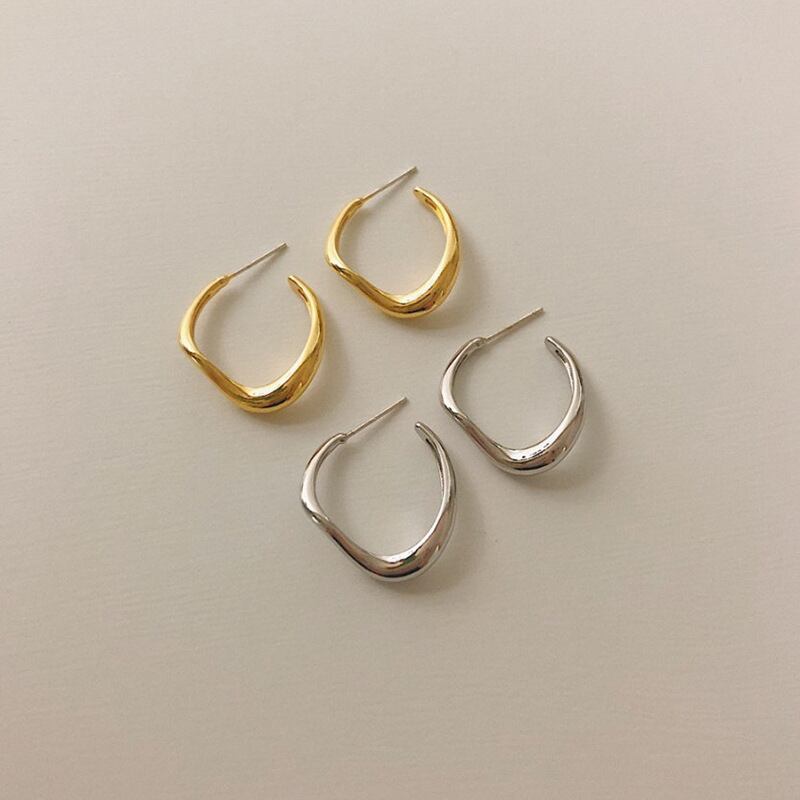 LIVVY INS スタイルシルバーカラー気質不規則イヤリングトレンドシンプルガール絶妙耳アクセサリー 指輪 銀