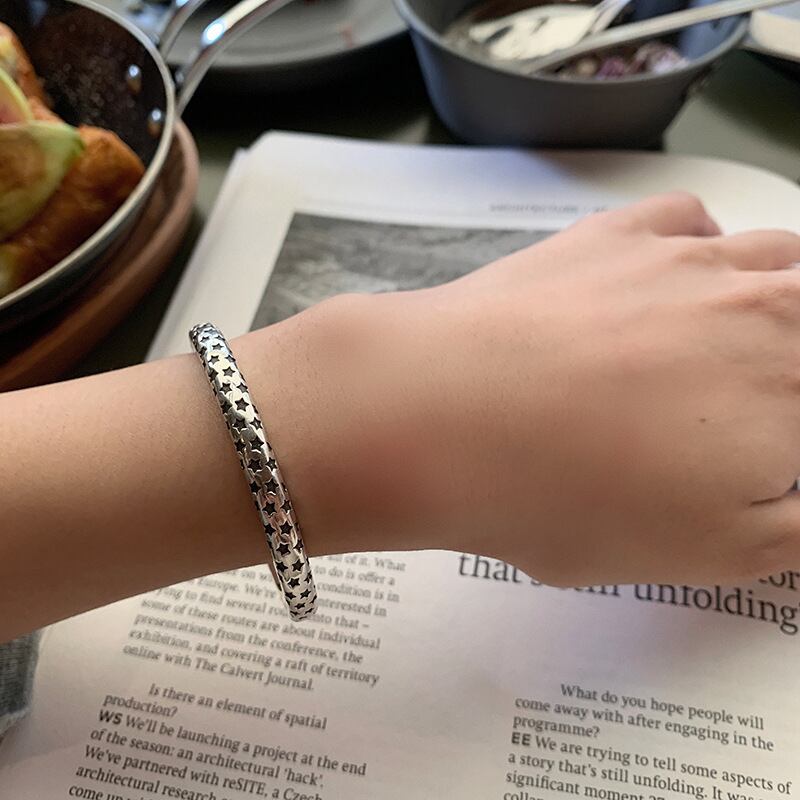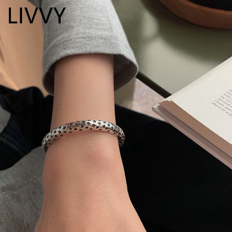 LIVVY シルバーカラー星型オープン調節可能ブレスレットパーティージュエリーアクセサリーギフト アジャスタブル 銀
