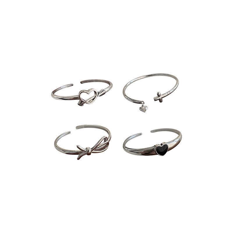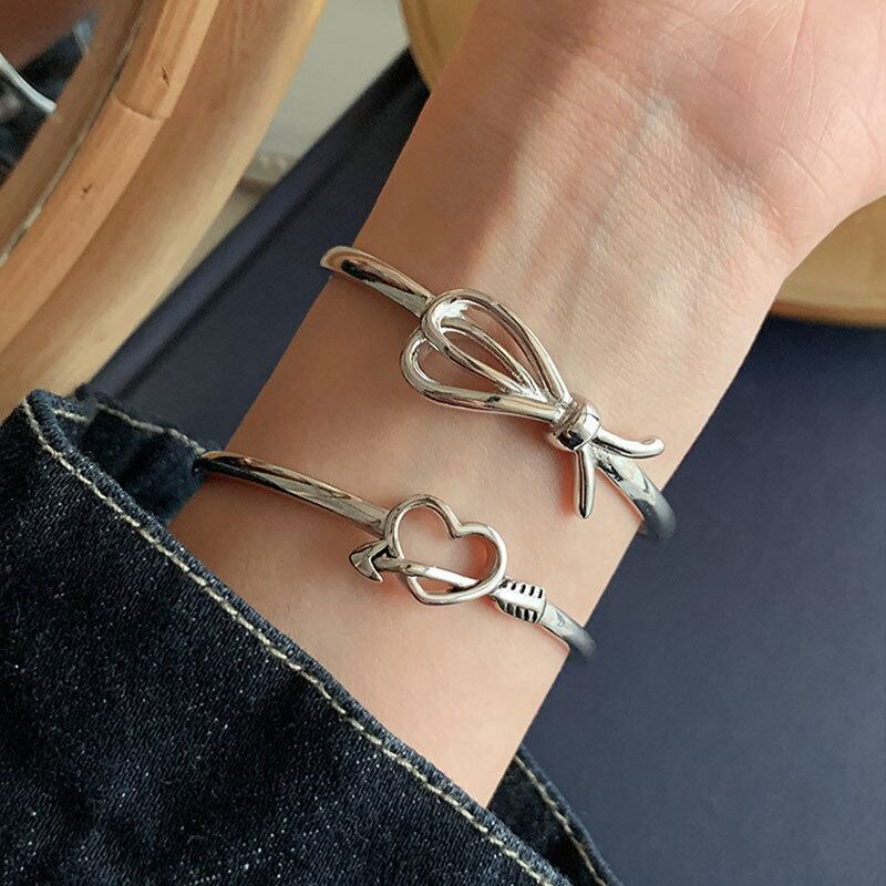LIVVY ブラックハート型ボウノットブレスレットトレンディスウィートシルバーカラー腕輪ジュエリーアクセサリー リボン 大人ガーリー キュート カジュアル 銀