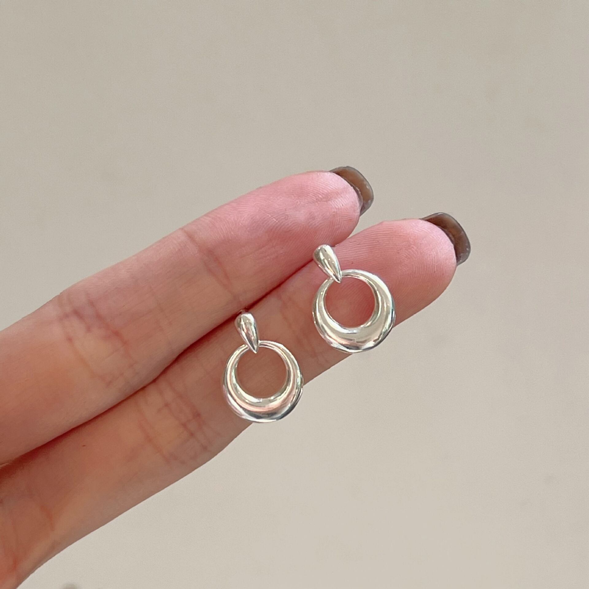 LIVVY シルバーカラーラウンドスタッドピアスパーティージュエリーミニマリズム幾何学的耳アクセサリー イヤリング リング 指輪 銀