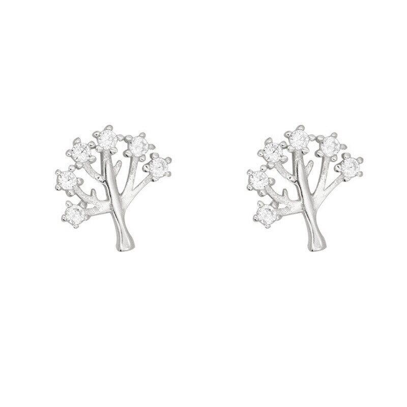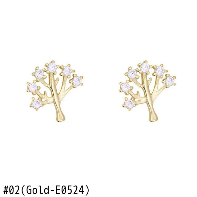 LIVVY シルバーカラー防止アレルギーツリージルコンスタッドピアス小さシンプル植物パーティージュエリーアクセサリーギフト イヤリング リング 指輪 銀