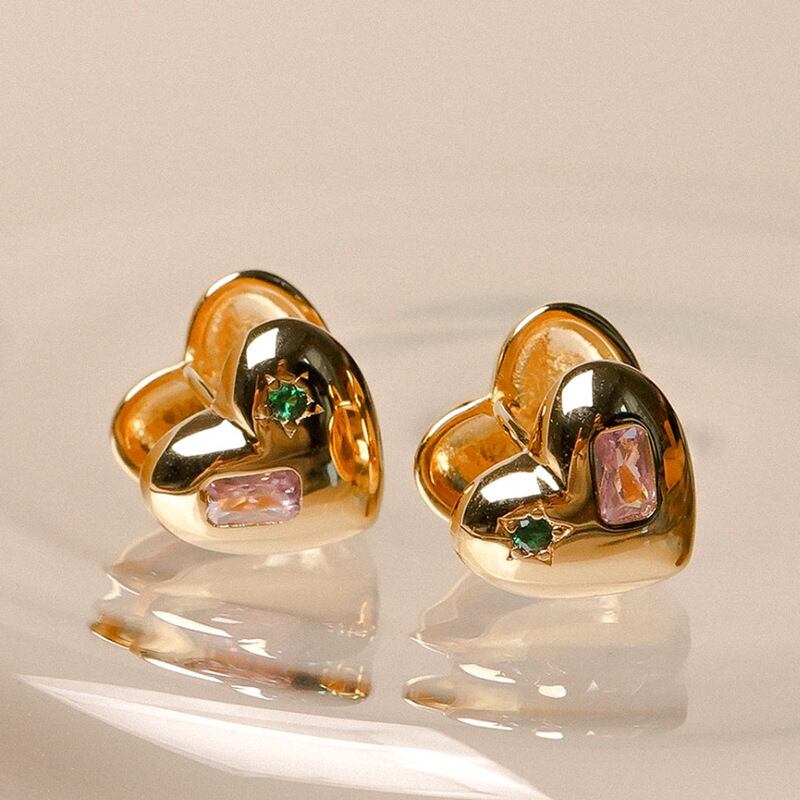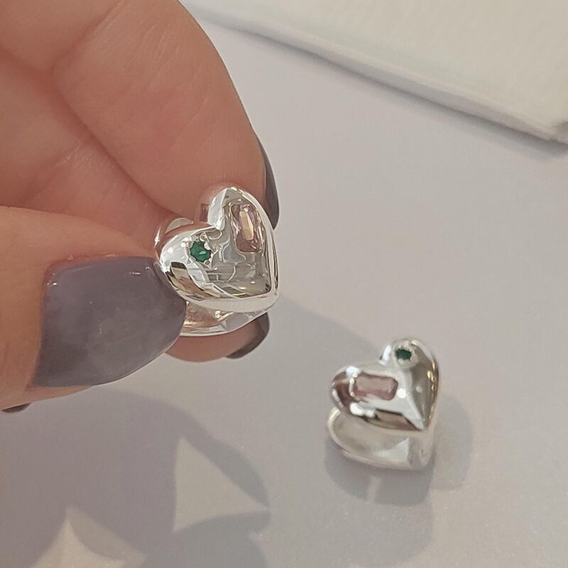 LIVVY シルバーカラージルコンイヤリングカップルクリエイティブ愛ハート耳ジュエリーウェディングギフト 指輪 銀