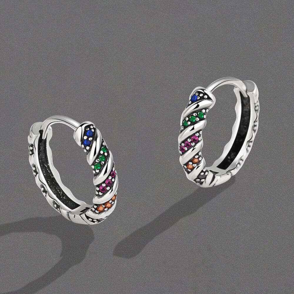 LIVVY スタイルカラフル幾何学的フープイヤリングトレンディレトロシルバーカラー誕生日パーティージュエリーギフト 指輪 銀