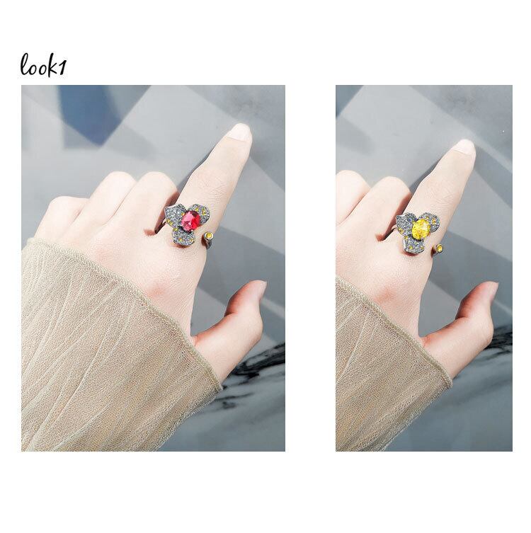 LIVVY シルバーカラークリエイティブミニチュアジルコン三つ葉花オープンリングファインジュエリーギフト 指輪 フラワーデザイン 銀