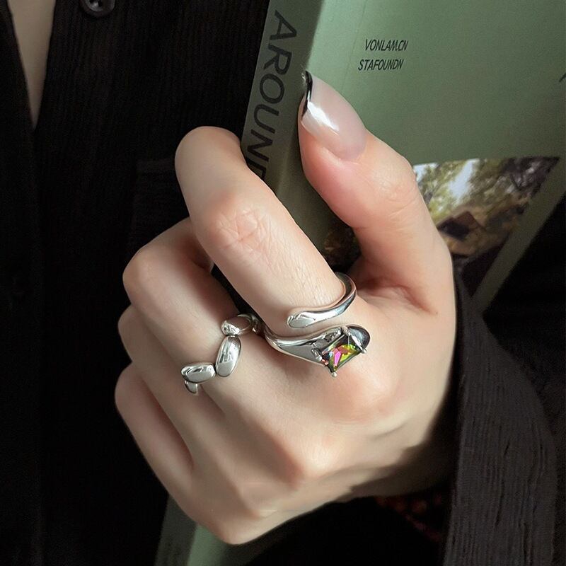 LIVVY シルバーカラーシンプル不規則幾何学的ジルコンリング気質ジュエリーアクセサリー 指輪 銀