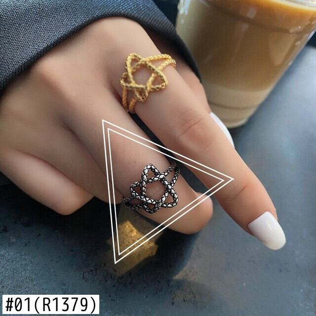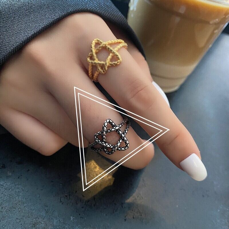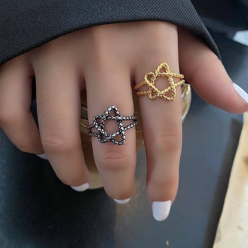 LIVVY クロス中空五芒星オープニング調節可能リングカップルトレンドジュエリーパーティーギフト アジャスタブル 指輪