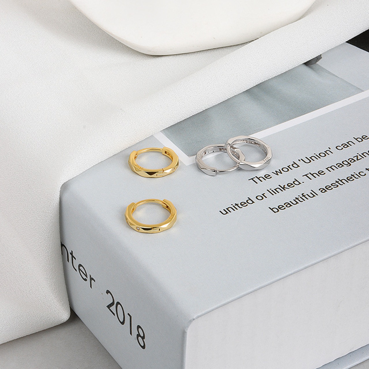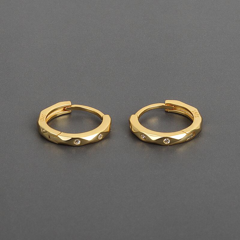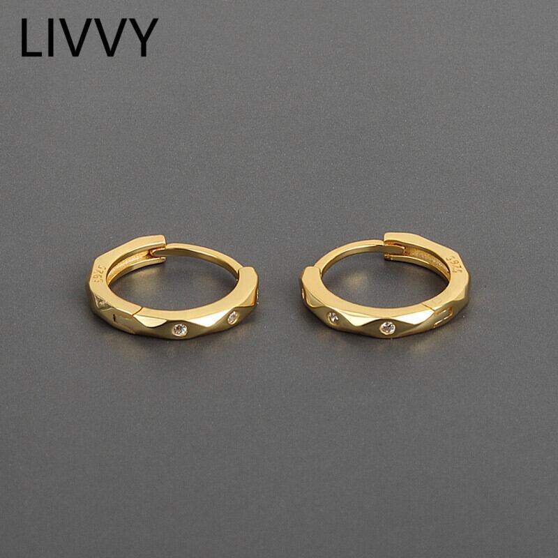 LIVVY シルバーカラースタイルジルコンラウンド小さイヤリング絶妙ジュエリーアクセサリー 指輪 銀