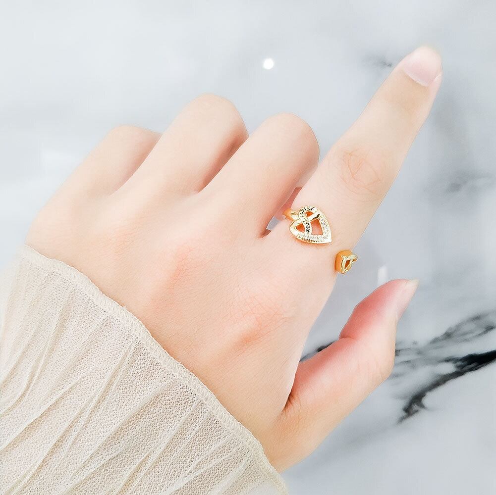 LIVVY ミニマリスト中空ハートリングチャームガールスパークリングジルコンウェディングパーティージュエリー 指輪
