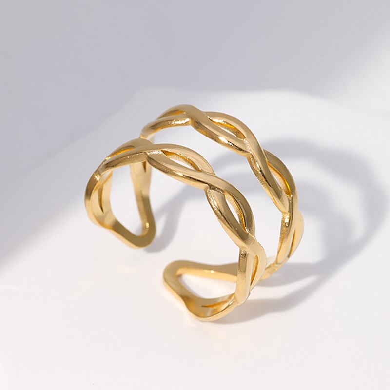 LIVVY シルバーカラーダブルリングチャームクリエイティブ多層中空アウト幾何手作りウェディングパーティージュエリー マルチレイヤー 指輪 銀