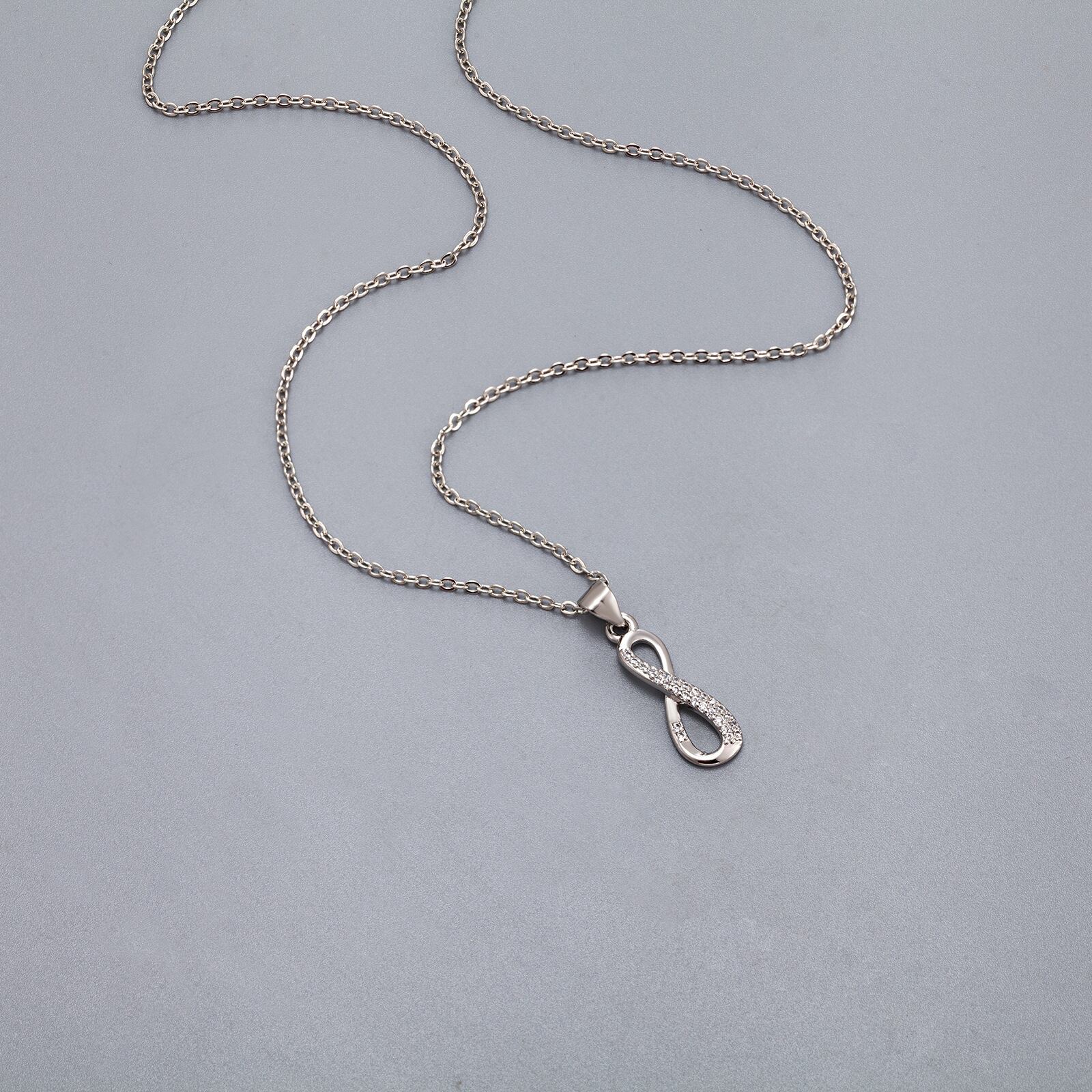 LIVVY シルバーカラーシンプルアラビア数字 8 型ジルコンネックレス女子学生ファインジュエリーギフト レース 銀