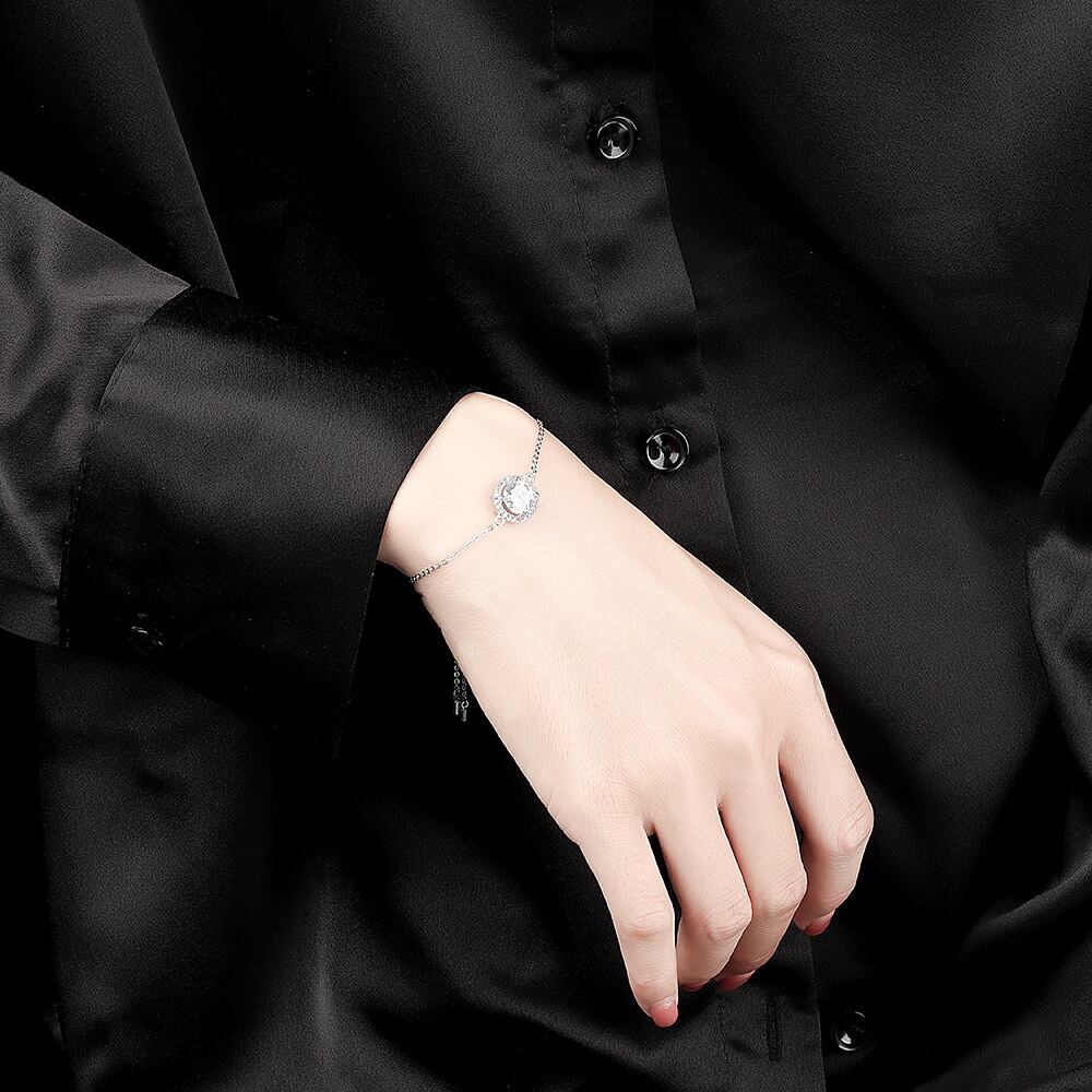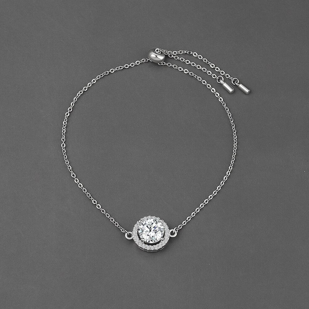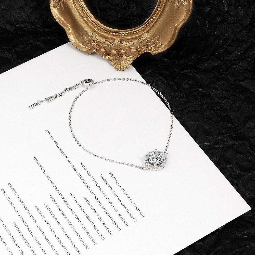 LIVVY シルバーカラーミニマリストラウンドジルコン調節可能ブレスレットシンプルジュエリー誕生日プレゼント アジャスタブル 銀