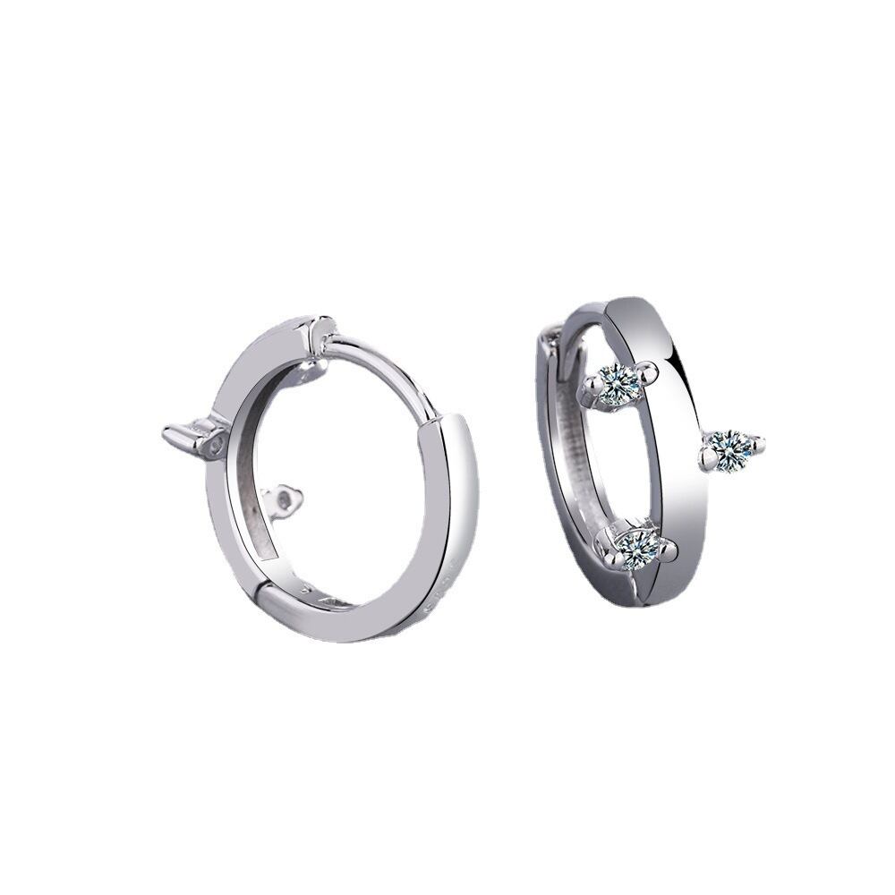 LIVVY シルバーカラーシンプル滑らかジルコンフープイヤリング気質パーティートレンディ絶妙ジュエリー 指輪 銀