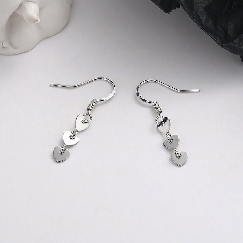 LIVVY シルバーカラーイヤリングパーティーハート形チェーンイヤリングシンプルショートジュエリーギフト 指輪 銀
