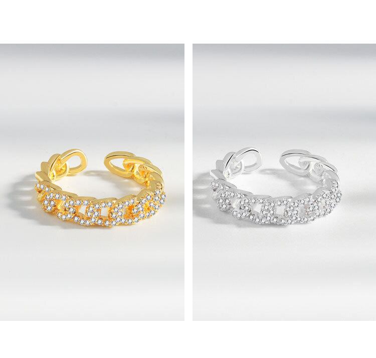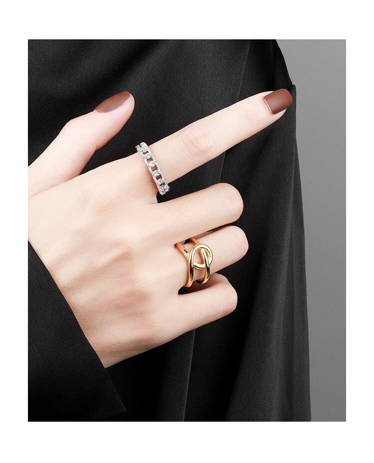 LIVVY シルバーカラートレンディリングクリエイティブシンプル中空幾何学チェーンジルコン誕生日ジュエリーギフト 指輪 銀