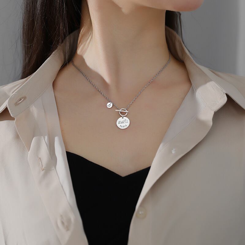 LIVVY シルバーカラーラウンドペンダントネックレスシンプル鎖骨 OT チェーントレンディネックジュエリーアクセサリー レース 銀