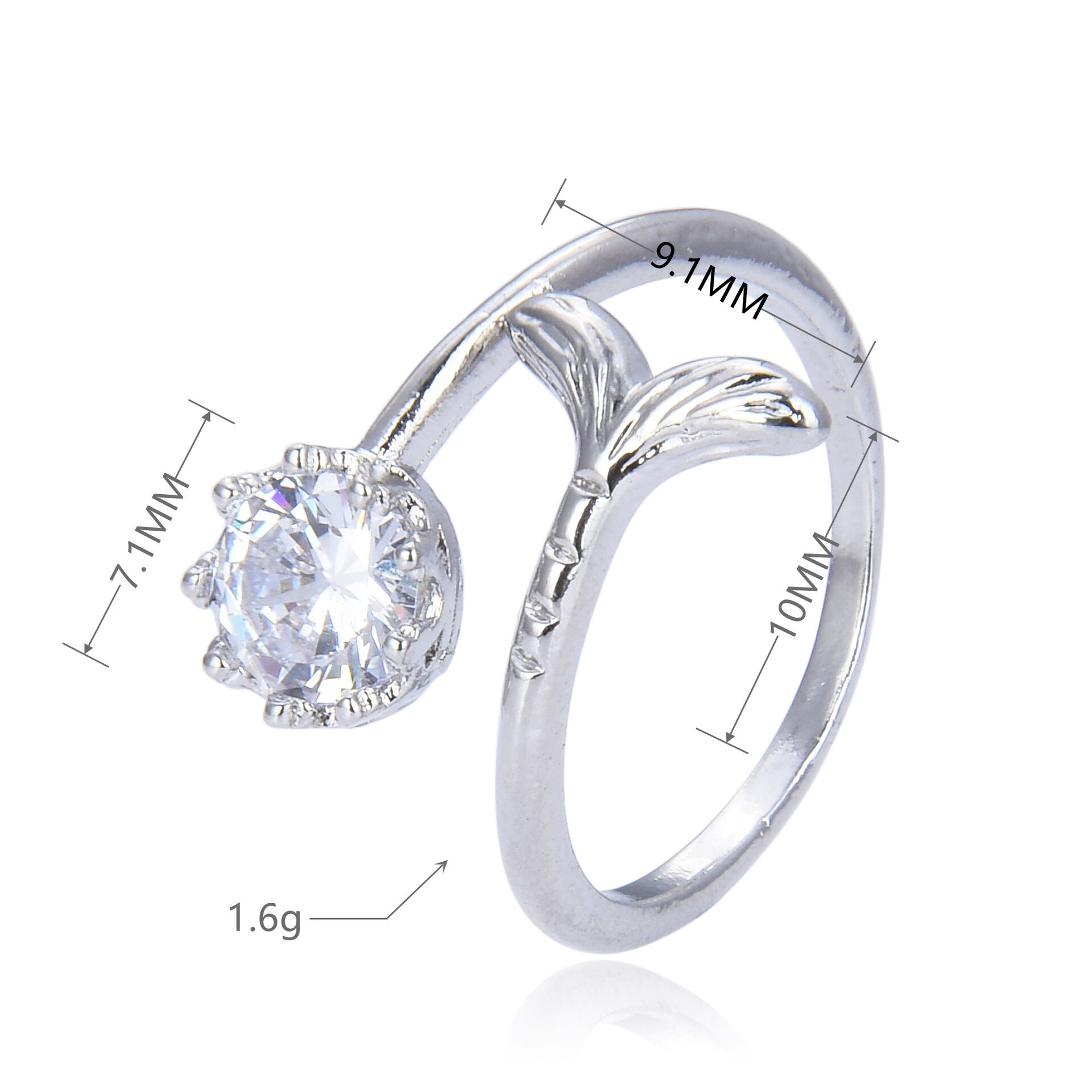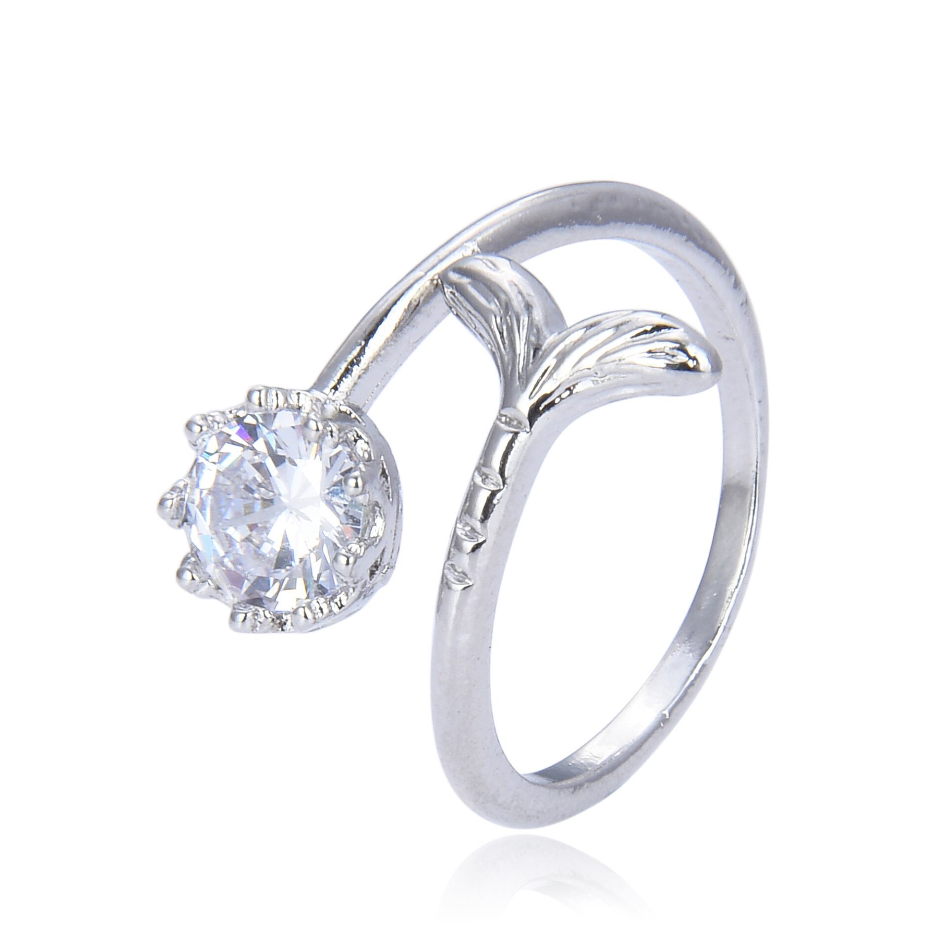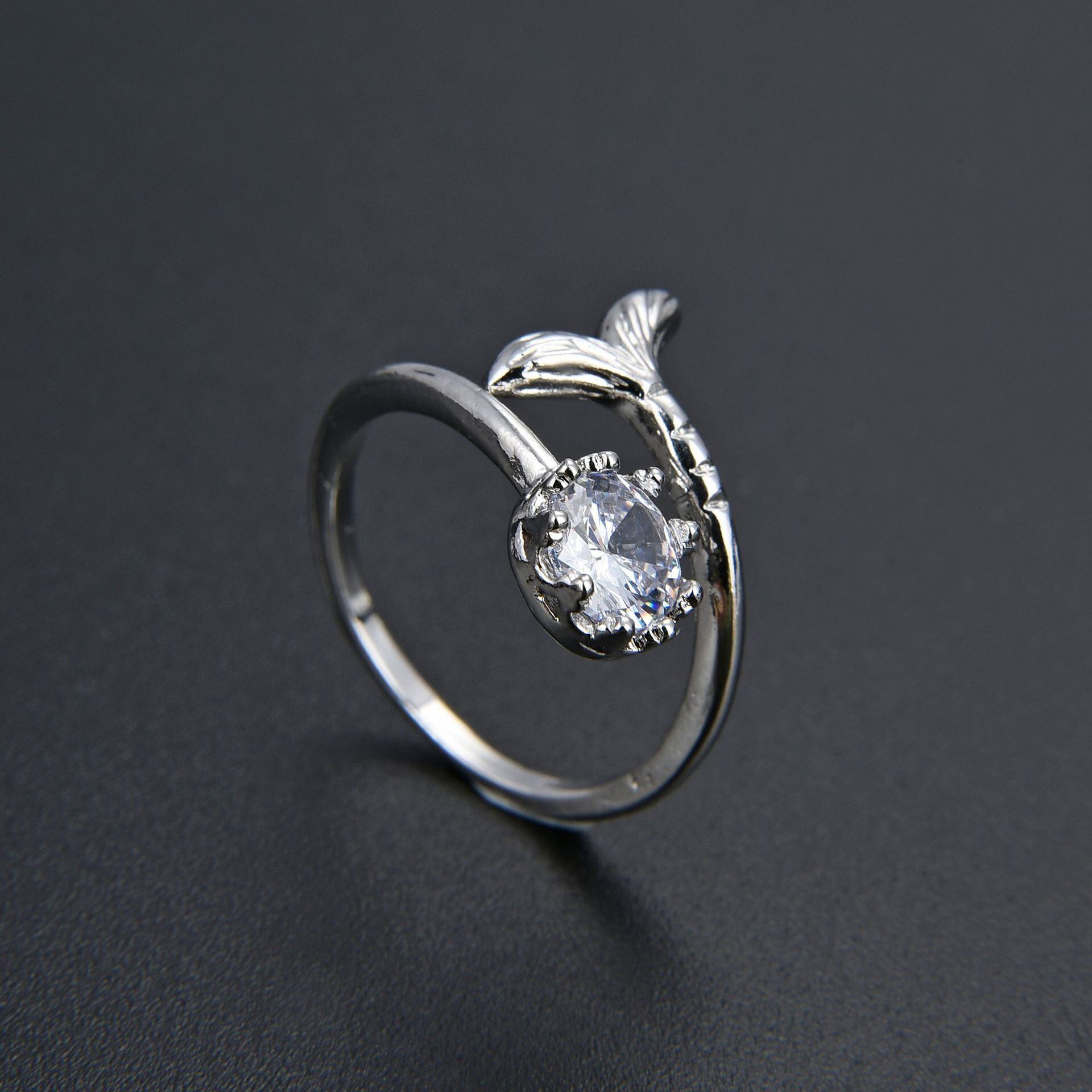 LIVVY シルバーカラークリエイティブフィッシュテールジルコンオープン調節可能リングオールマッチパーティージュエリーギフト アジャスタブル 指輪 銀