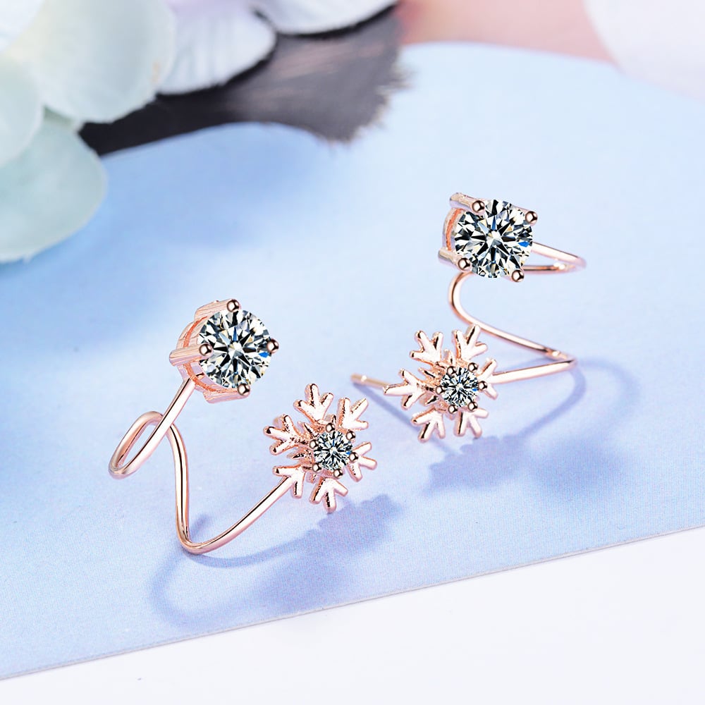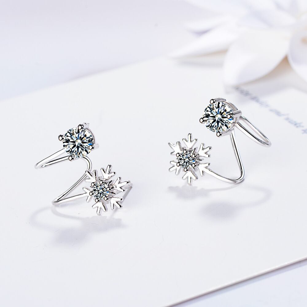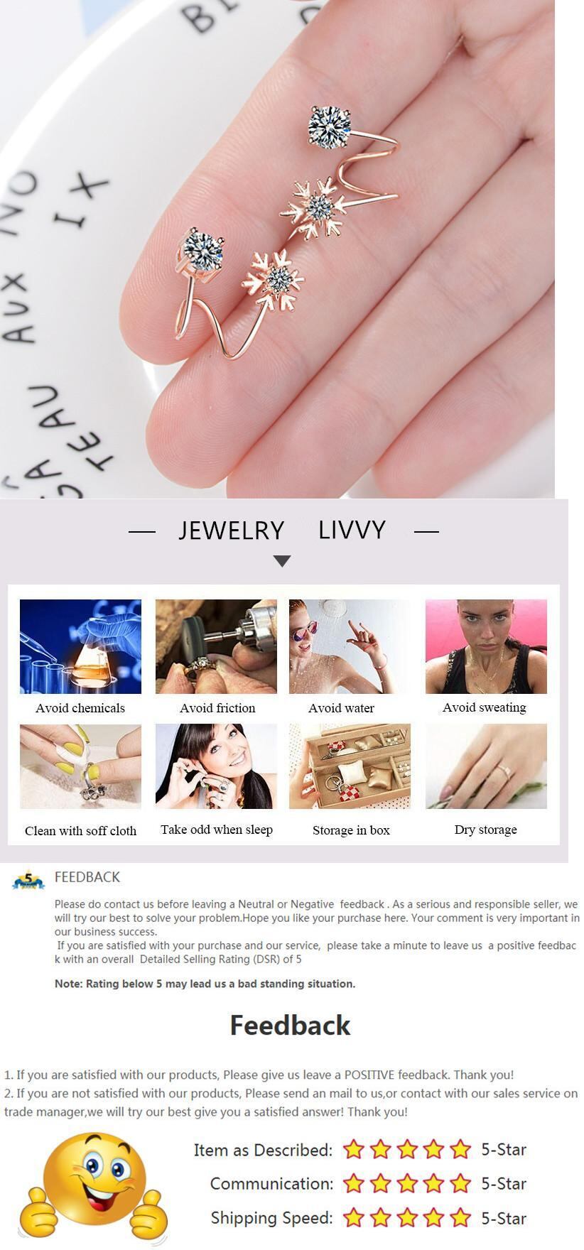 LIVVY シルバーカラー INS シンプルスノーフレークジルコンイヤリング人格高級ジュエリーアクセサリー 指輪 銀