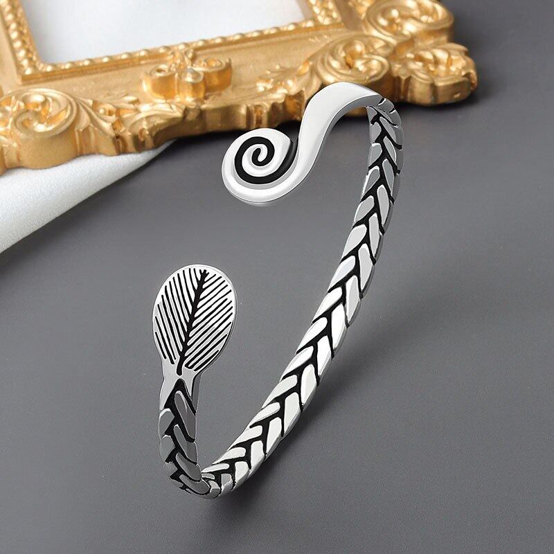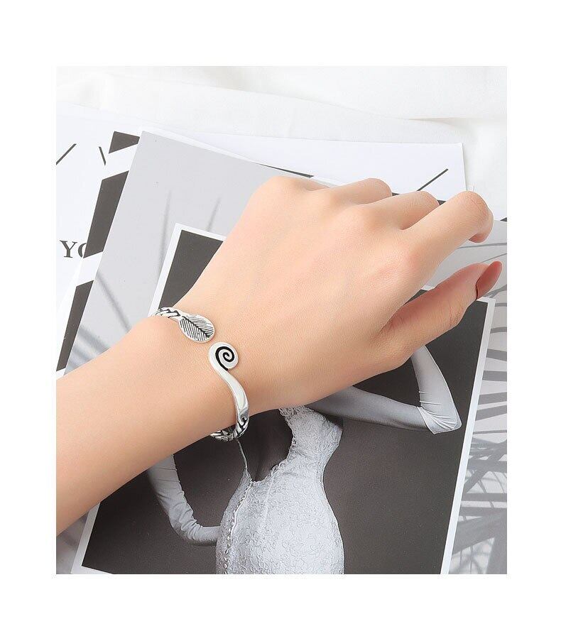 LIVVY シルバーカラー孔雀羽織ブレスレットカップルオープン調節可能トレンディパーティージュエリーギフト アジャスタブル 銀