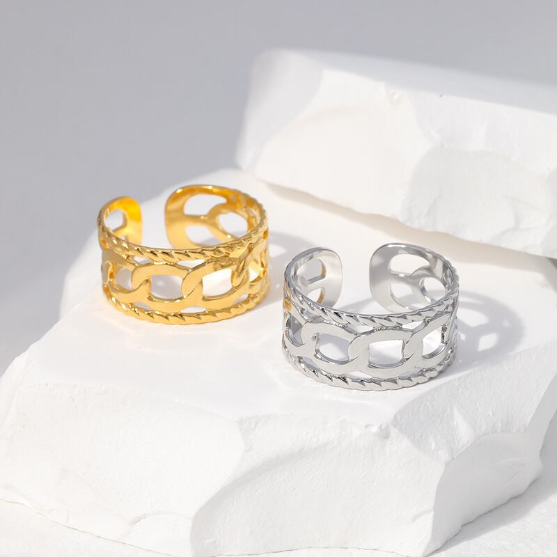 LIVVY ミニマリストシルバーカラーリングクリエイティブ中空幾何パーティーリングジュエリーギフト 指輪 銀