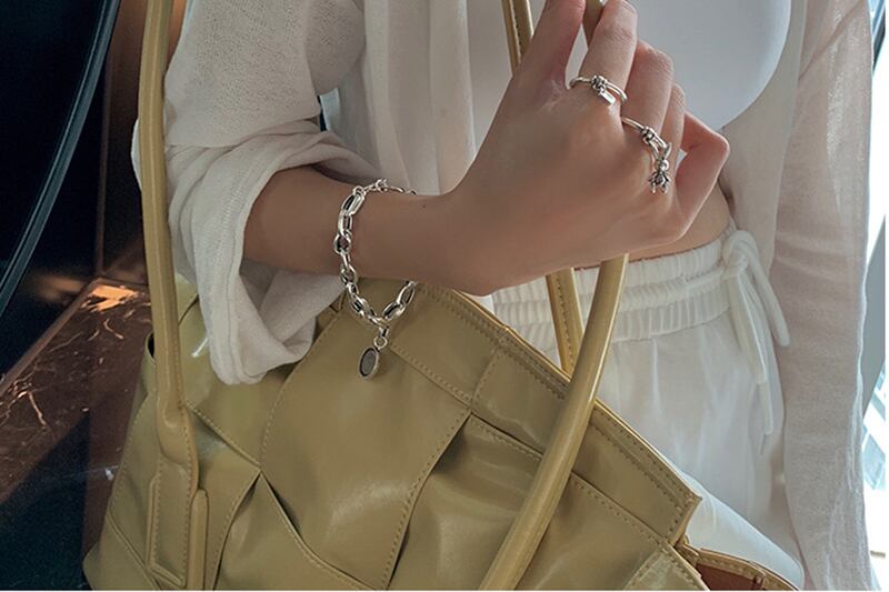 LIVVY シルバーカラーラウンド時計 A シェイプペンダントブレスレット手作りパーティーアクセサリージュエリー 銀
