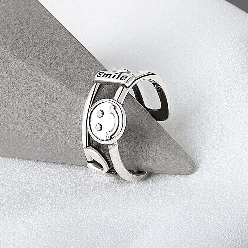 LIVVY シルバーカラー人格中空スマイルフェイス調節可能タイシルバーリングジュエリートレンド アジャスタブル 指輪 銀