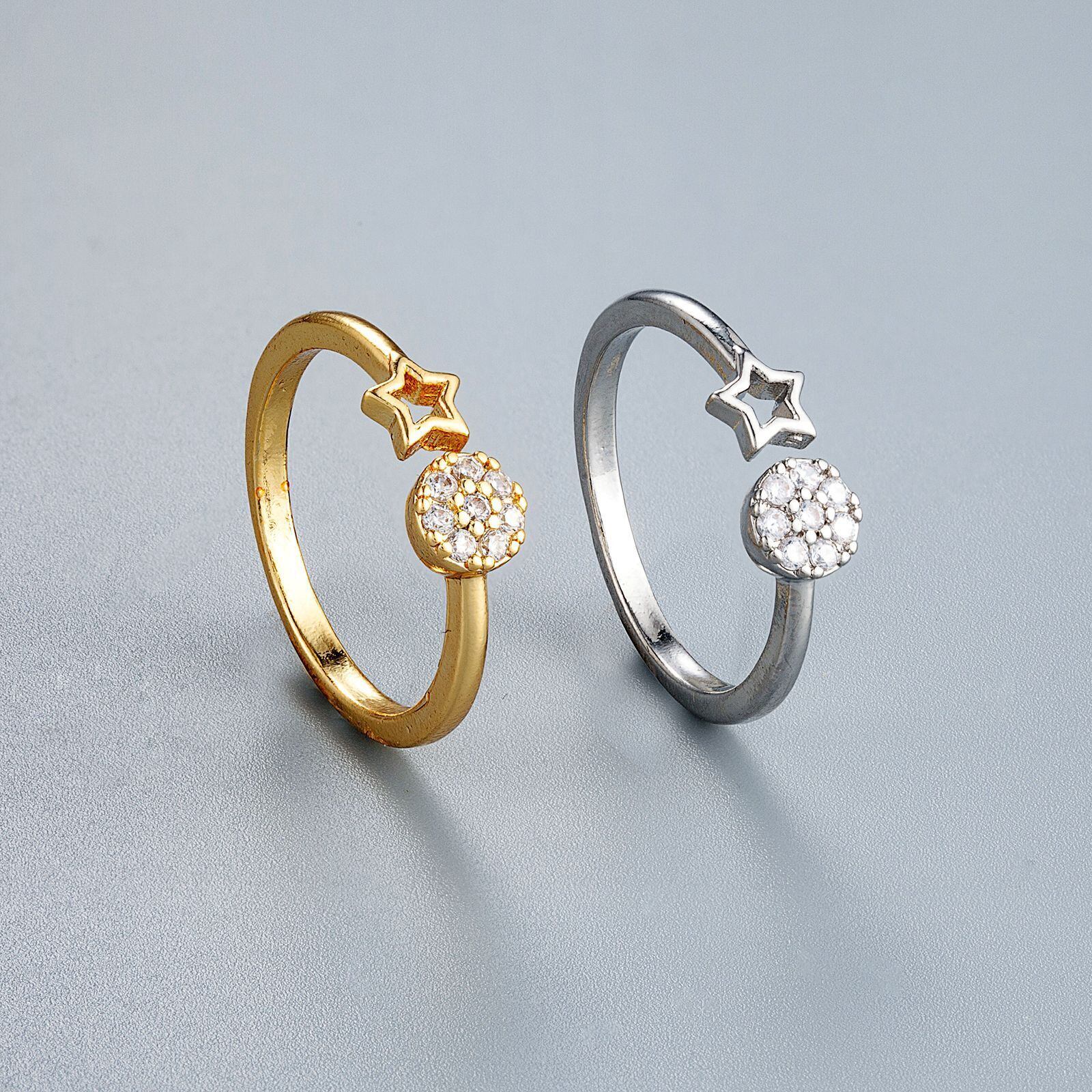 LIVVYSilver カラーミニマリスト絶妙ラウンドジルコン中空スター調節可能リングガールズ気質ジュエリーアクセサリー アジャスタブル 指輪 シルバー 銀