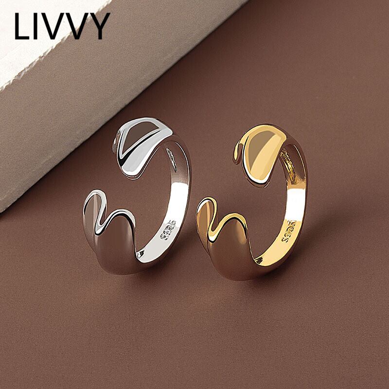 LIVVY 不規則幾何学的シルバーカラーリングシンプルクリエイティブオープンジュエリーアクセサリーギフト 指輪 銀