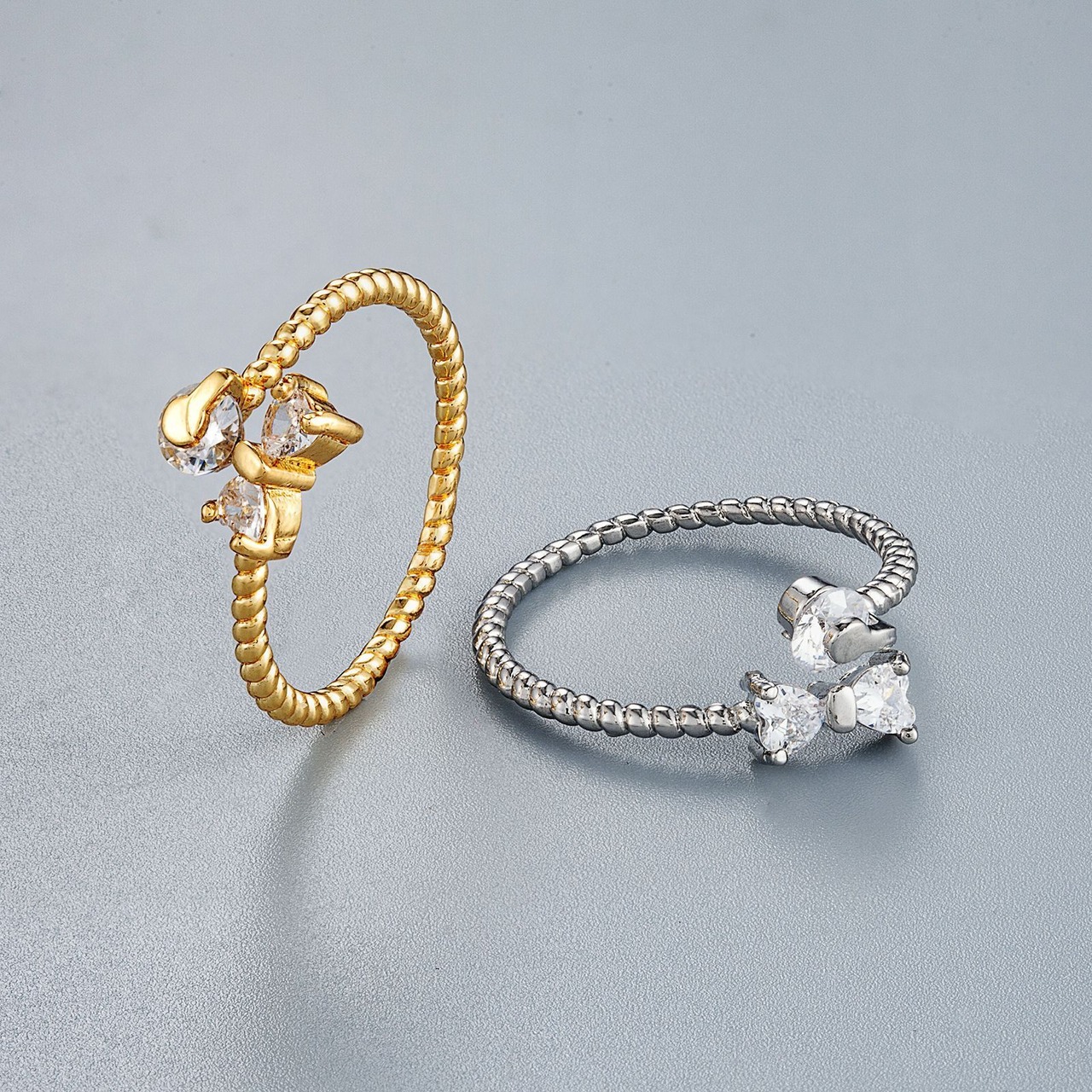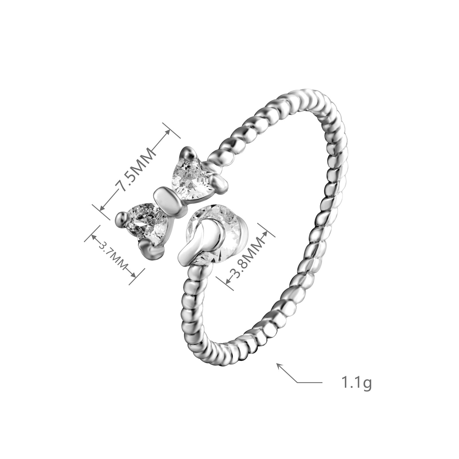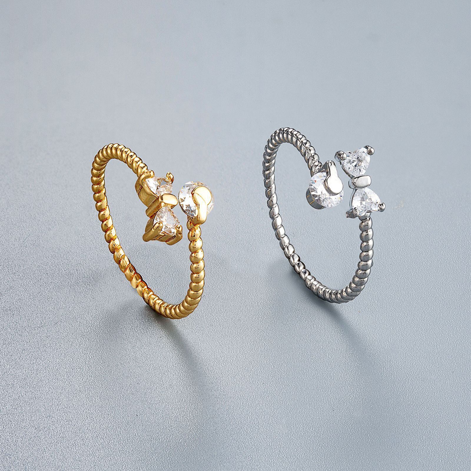 LIVVY シルバーカラークリスタルジルコンちょう結び結婚指輪チャーム高級婚約指輪ジュエリーパーティーギフト リボン リング 銀