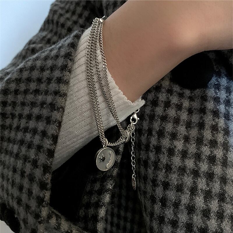 LIVVY ラウンドペンダントスターレターブレスレット男性シルバーカラーヒップホップパーティージュエリーギフト 銀