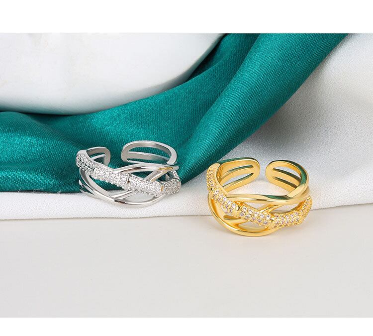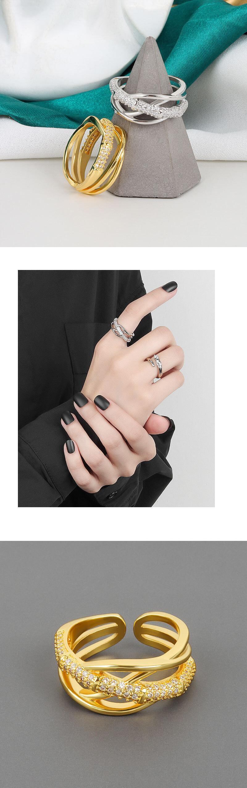 LIVVY シルバーカラー個性多層クロスキュービックジルコンリングジュエリーシンプルオープンリング最高ギフト 指輪 銀