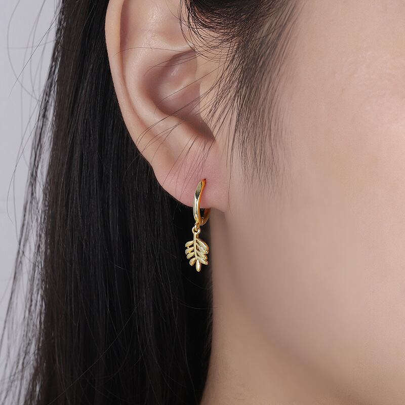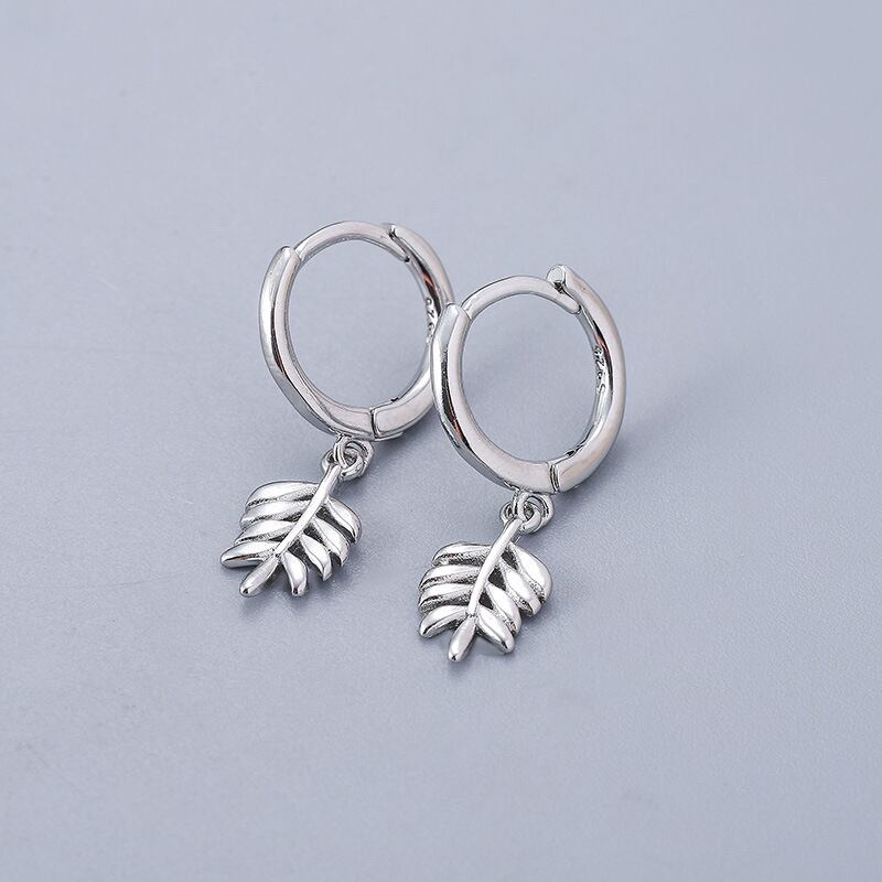 LIVVY シルバーカラークリエイティブ葉ペンダントシンプルイヤリング絶妙誕生日ジュエリーギフト 指輪 銀