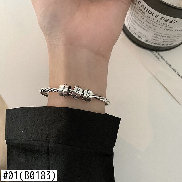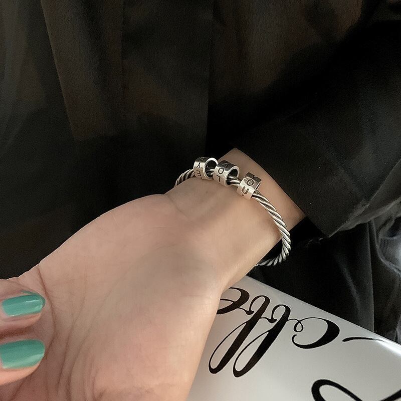 LIVVY シルバーカラーレトロツイスト織 3 ラブレターブレスレットトレンディパンクスタイルオープン誕生日プレゼント手作りジュエリー 銀