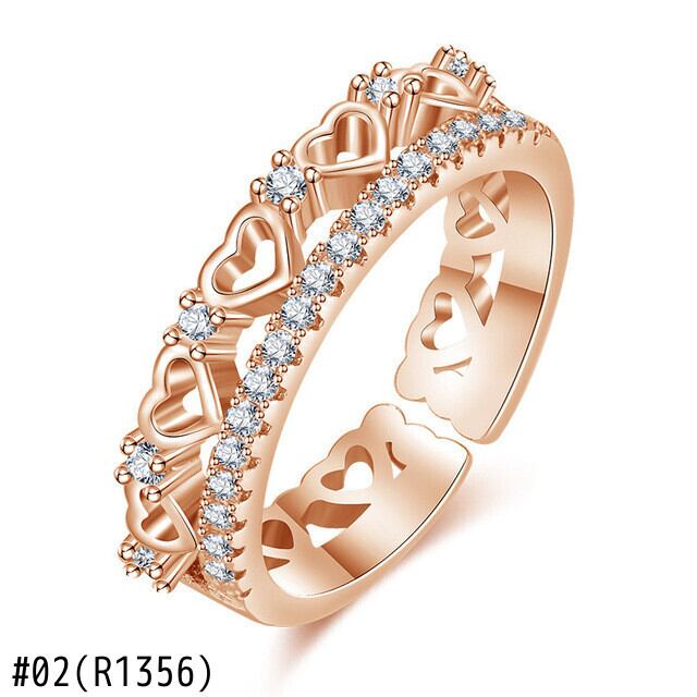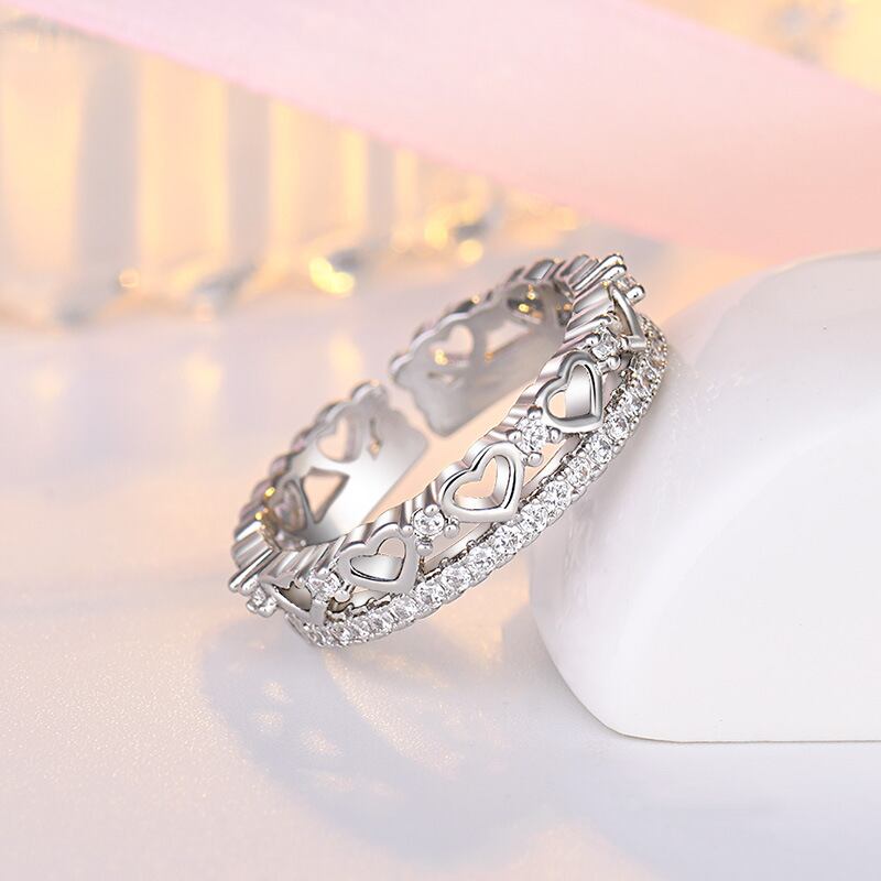 LIVVY シルバーカラー中空ハート二重層リング高級ローズゴールド恋人ジュエリー誕生日パーティーギフト 指輪 銀