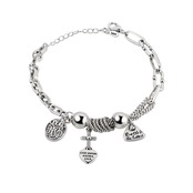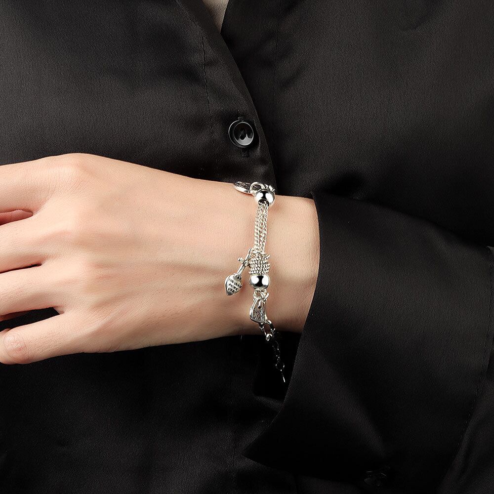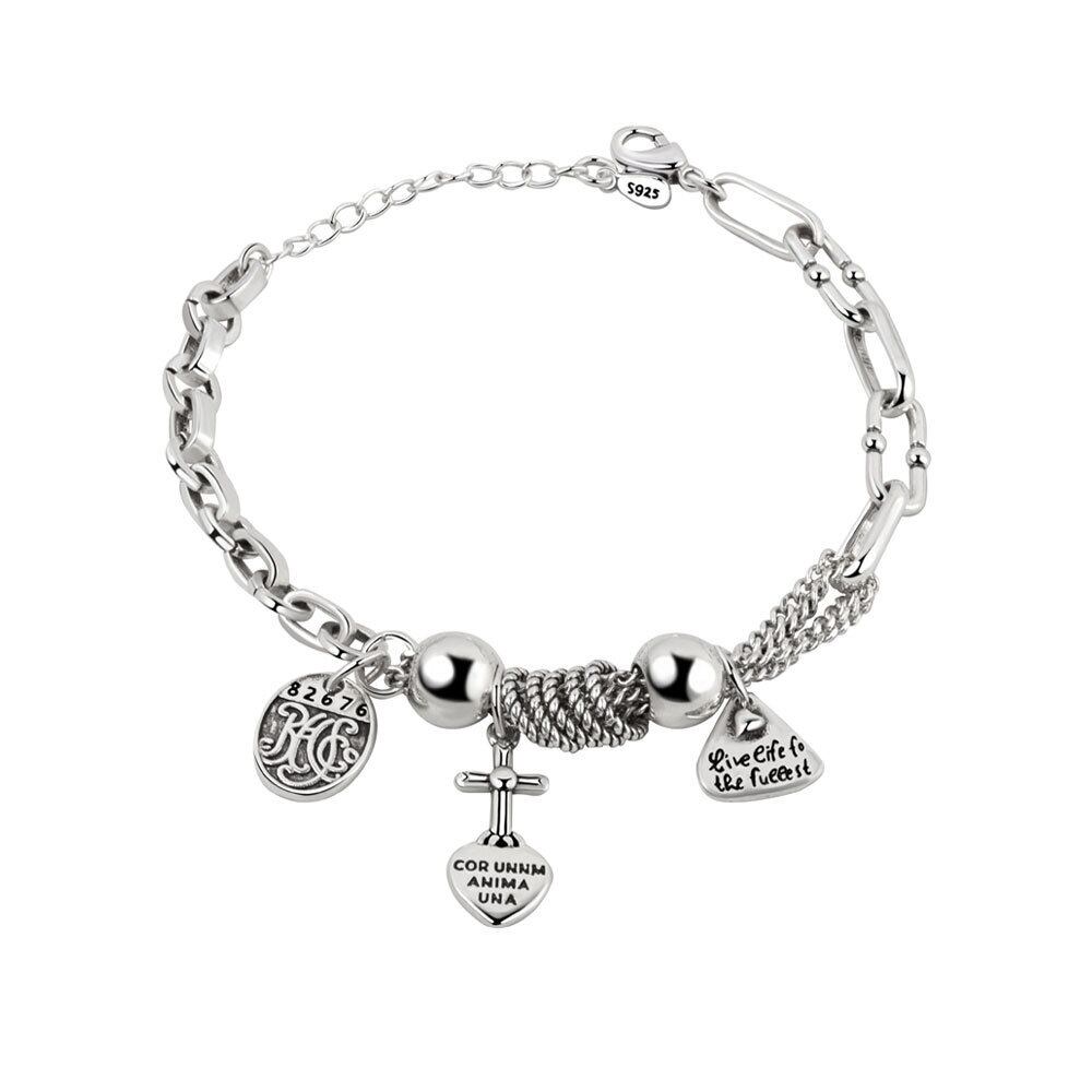 LIVVY シルバーカラーラブハートクロス幾何学チェーンステッチブレスレットマルチリングレトロジュエリー Clic 銀