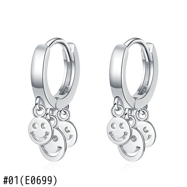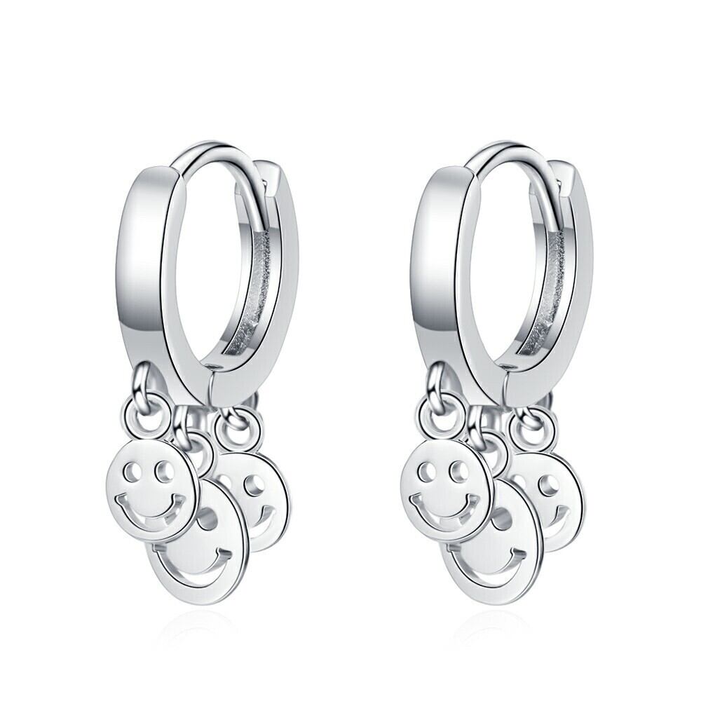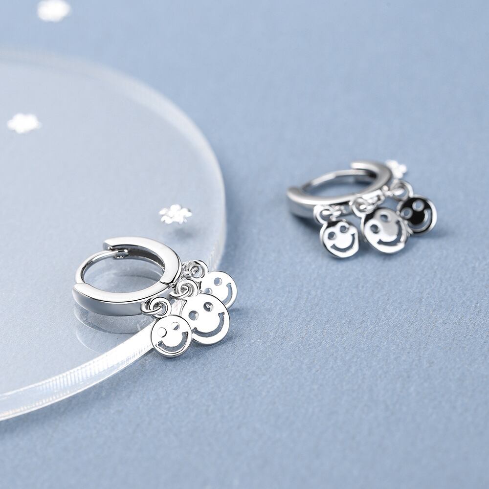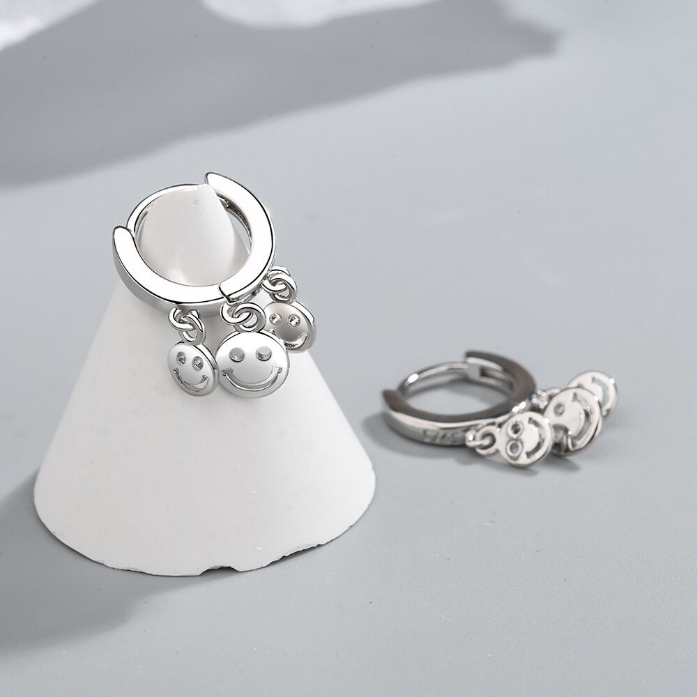 LIVVY シルバーカラーパンクスマイルフェイス電話耳飾りイヤリングシンプル短い気質トレンディジュエリー ショート 指輪 銀