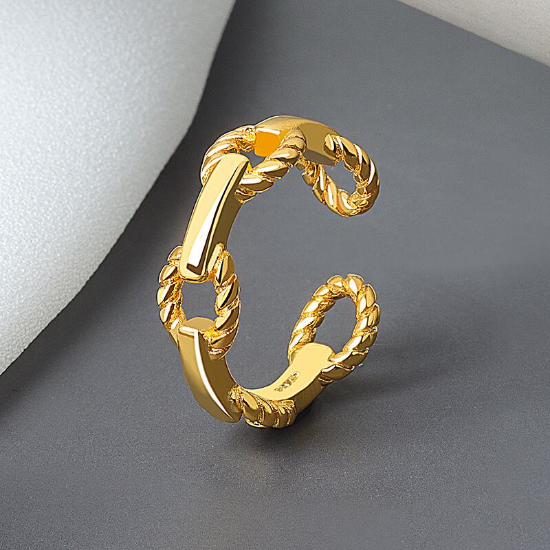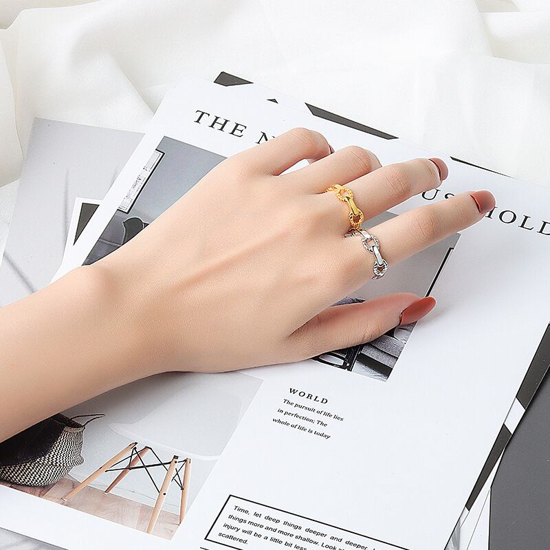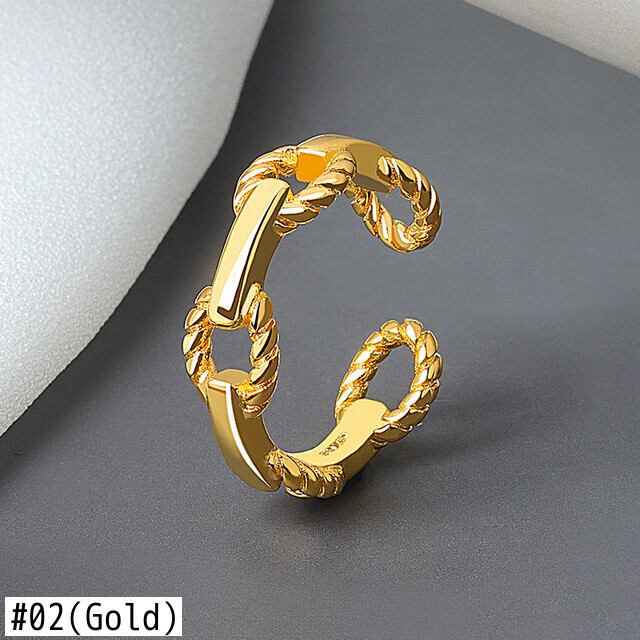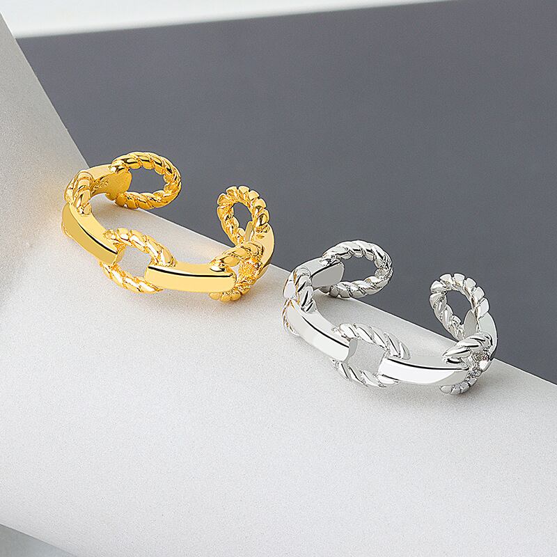 LIVVY シルバーカラー二層クロス中空チェーンリングシンプル人差し指手作りギフト 指輪 銀