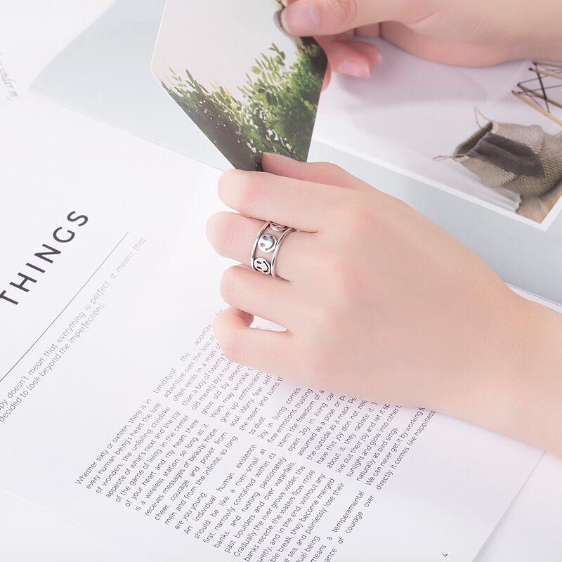 LIVVY シルバーカラーパンク INS スタイルパーティージュエリークリエイティブ幾何学的スマイルフェイス調節可能リング アジャスタブル 指輪 銀