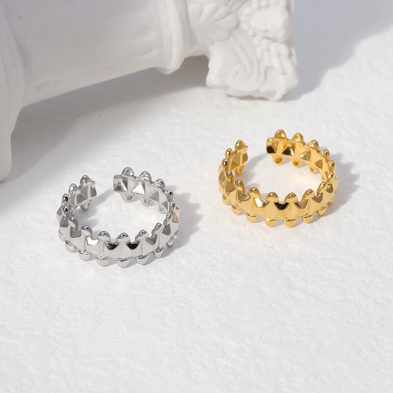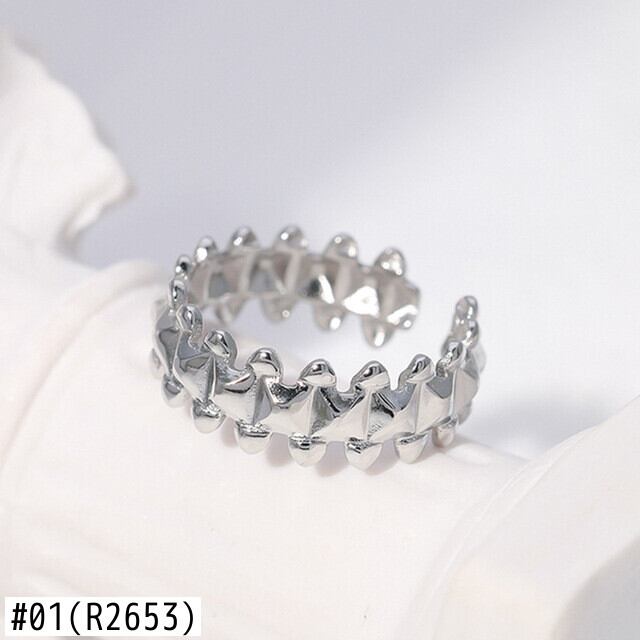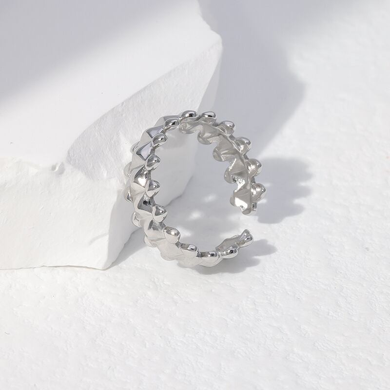 LIVVY シルバーカラー指輪カップルシンプル不規則パターン幾何手作りパーティージュエリー リング 銀