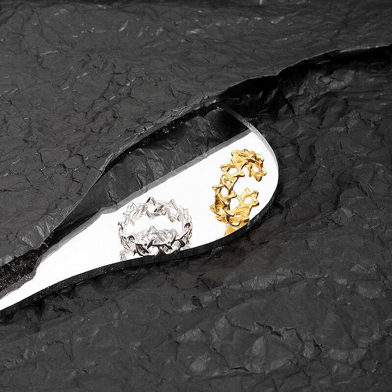LIVVY シルバーカラークリエイティブ幾何学的中空オープニングリングギフトジュエリーアクセサリートレンディギフト 指輪 銀