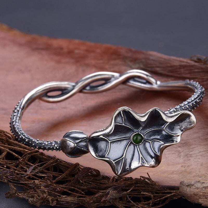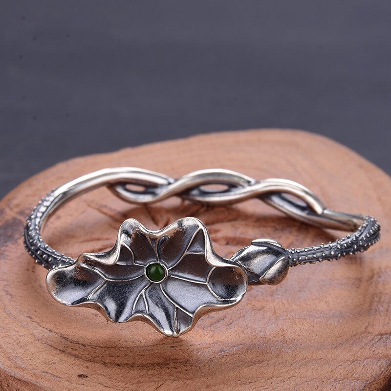 LIVVY タイシルバーカラージュエリー蓮葉ブレスレットグリーンジルコンブレスレットクリエイティブパーティージュエリーギフト 銀