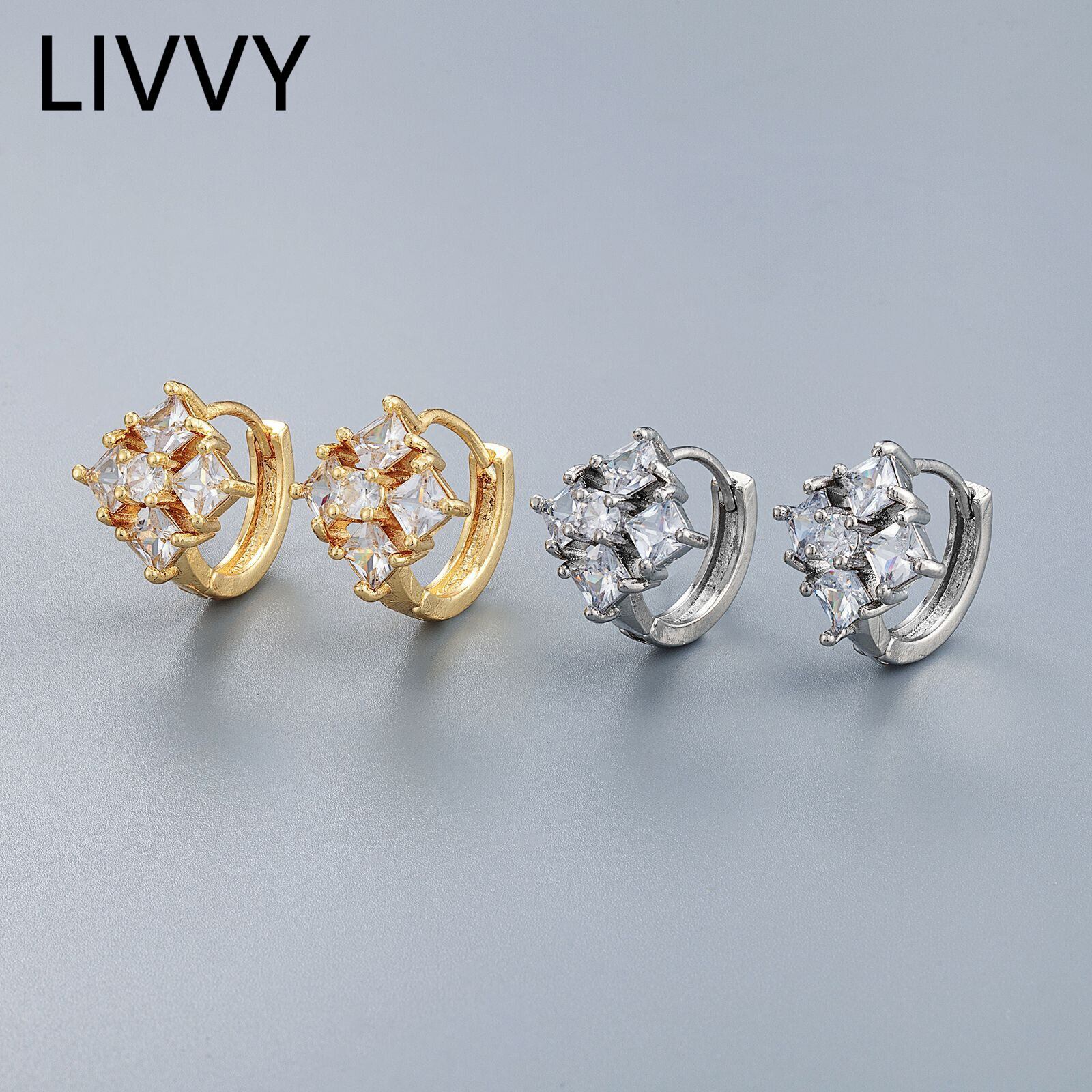 LIVVY シルバー色アレルギー防止耳フープイヤリングトレンディ小さシンプル手作りクリスタルジュエリーギフト 指輪 銀