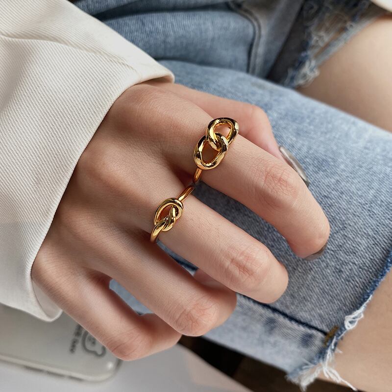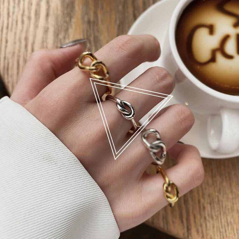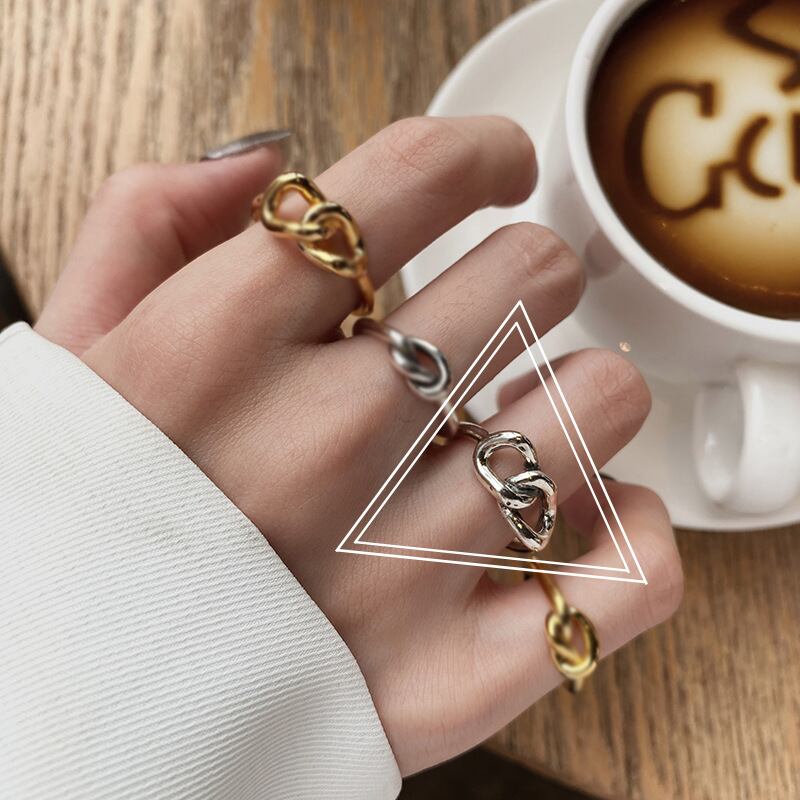 LIVVY シルバー色不規則中空円形クロスノットリングクリエイティブ手作りパーティージュエリー 指輪 銀