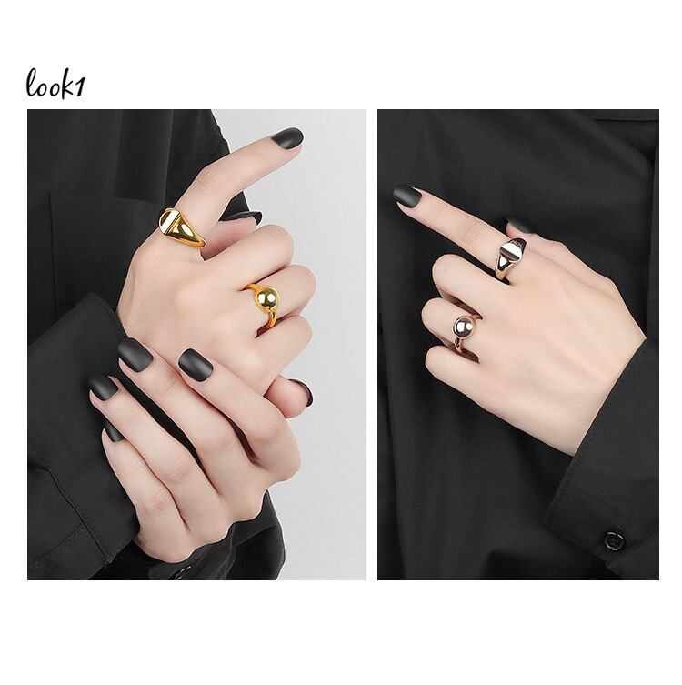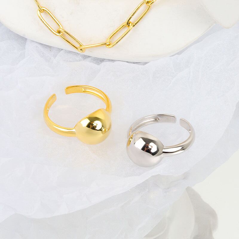 LIVVY シルバーカラーラウンド開口部調節可能リングシンプルロマンチックチャームジュエリーパーティーギフト アジャスタブル 指輪 銀
