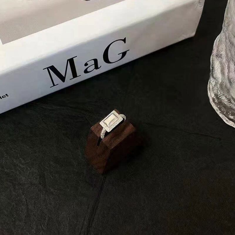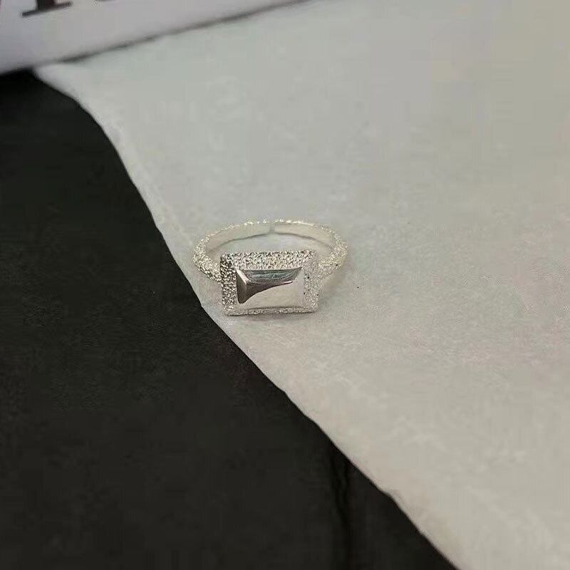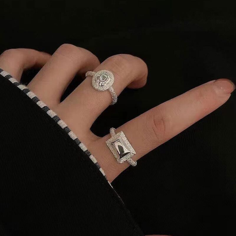 LIVVY シルバーカラースクエアラウンド幾何学リングシンプルライト高級トレンドジュエリー Accessorize アクセサリー 指輪 銀 スクウェア