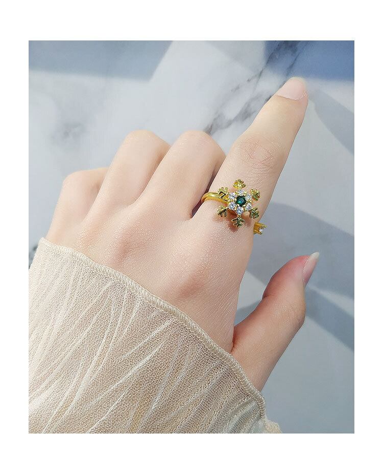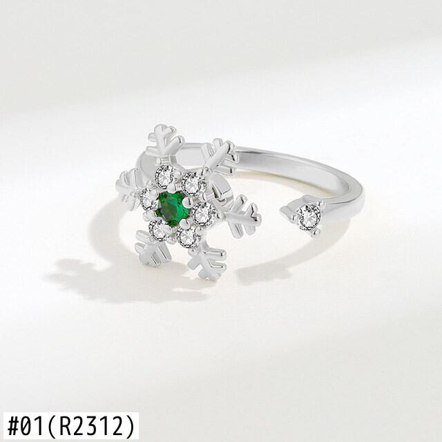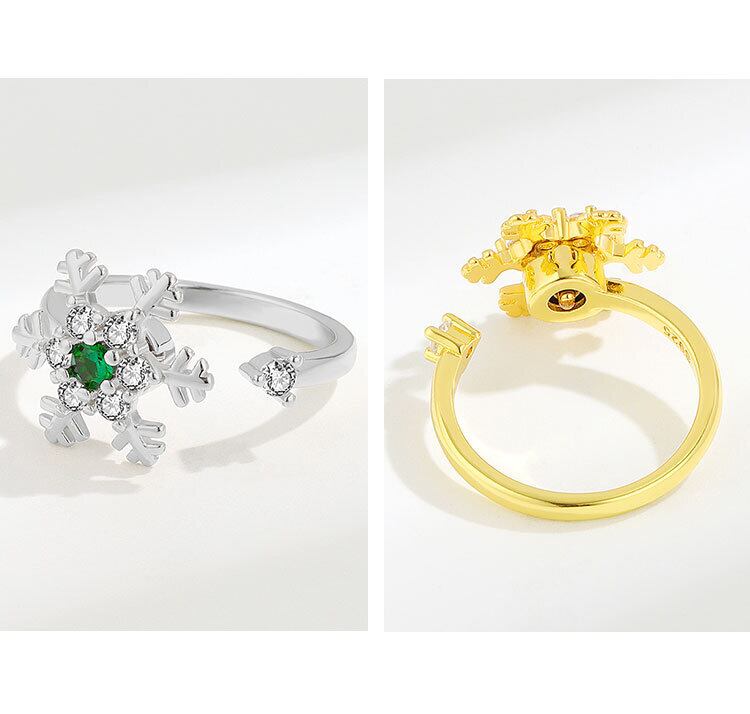 LIVVY シルバーカラークリエイティブスパークリングジルコンスノーフレーク結婚指輪花嫁ジュエリーパーティーギフト 銀