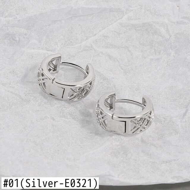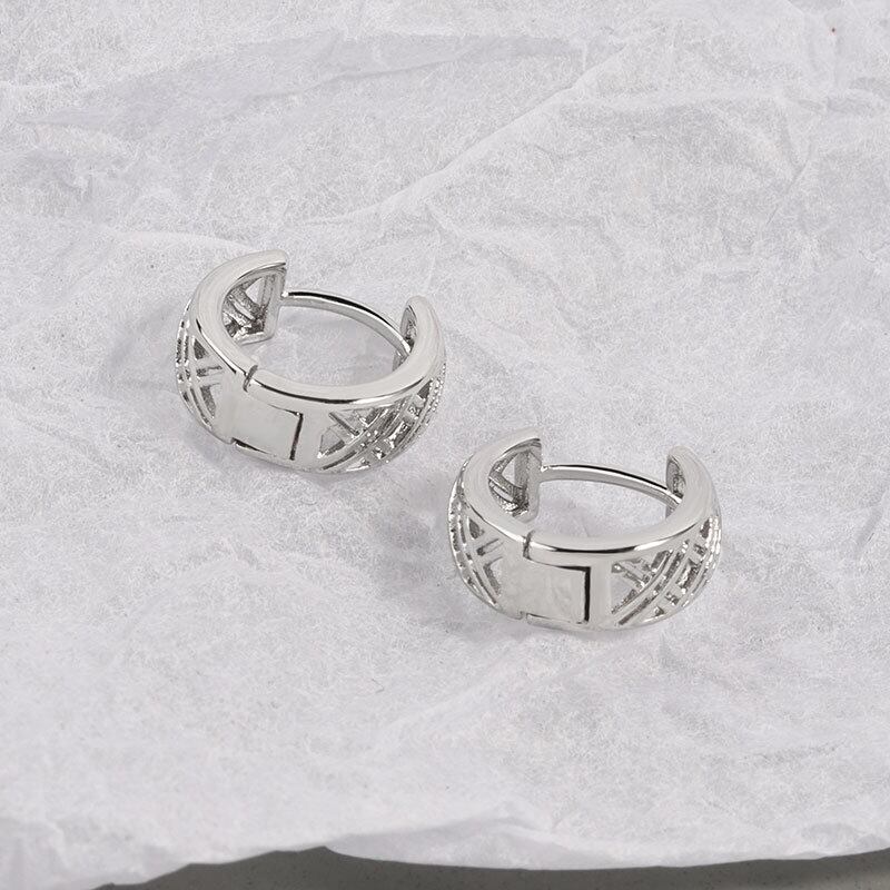 LIVVY シルバーカラー中空メッシュフープイヤリングミニマリストトレンディ気質手作りパーティージュエリーギフト 銀