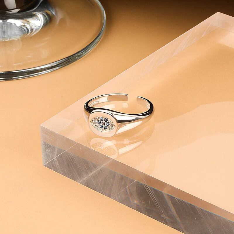 LIVVY シルバーカラーフラワーブルージルコン調節可能リングジュエリークリエイティブ手作りパーティーアクセサリー アジャスタブル 指輪 フラワーデザイン 銀