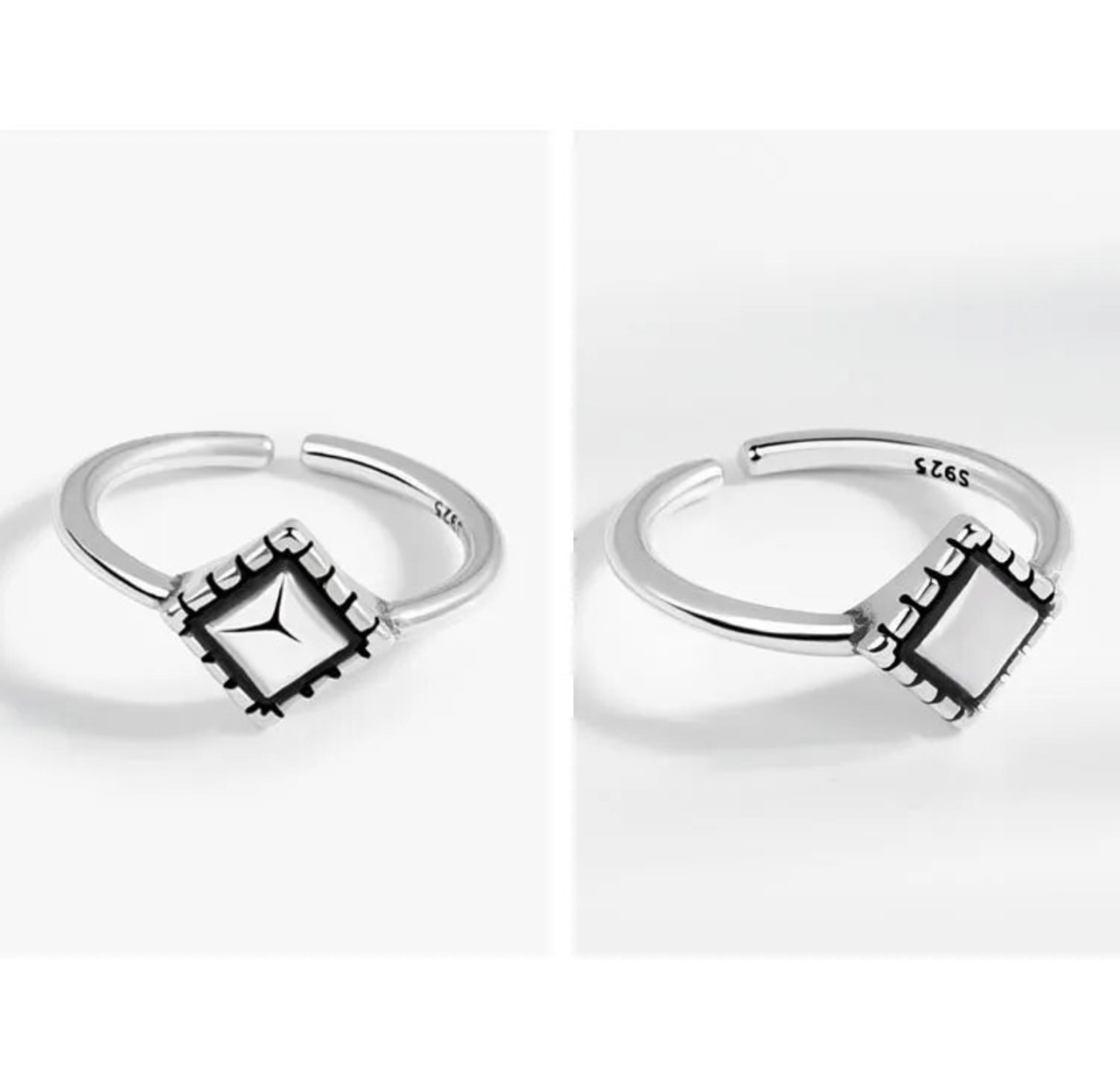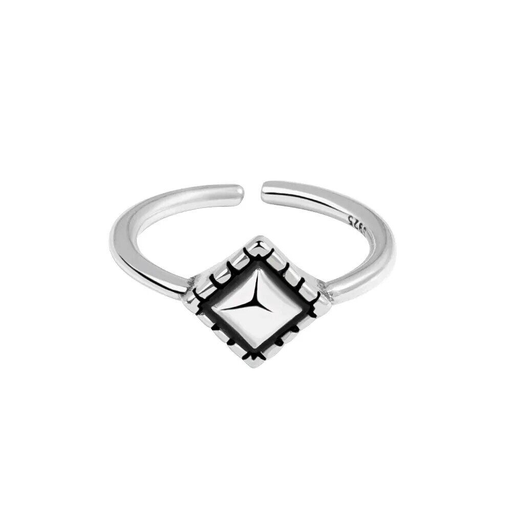 LIVVY - 品質タイシルバーカラースクエアリングレトロオープン手作りカップルジュエリーギフト 指輪 銀 スクウェア