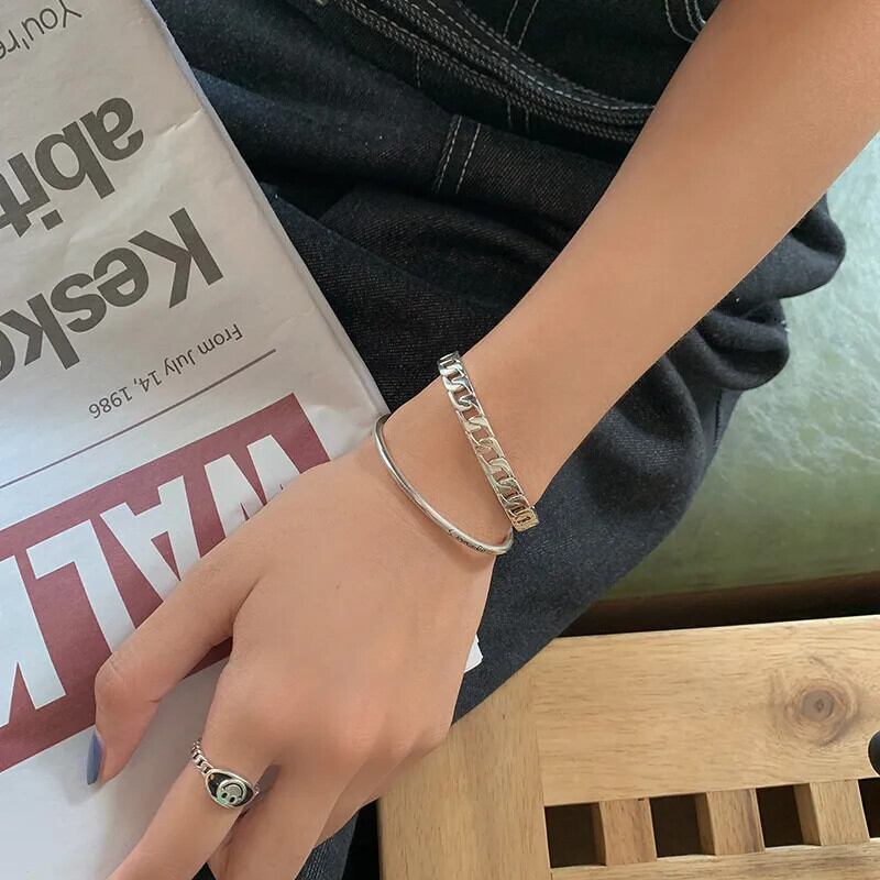 LIVVY ミニマリストスマイルレターチェーンブレスレットかわいい気質シンプルオープンガールフレンド誕生日ジュエリーギフト 大人ガーリー スウィート キュート カジュアル