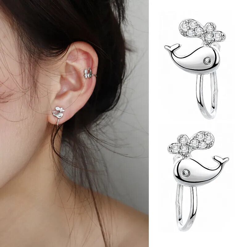 LIVVY シルバーカラー甘いロマンチッククジラ耳クリップイヤリングイルカピアスしジュエリーギフト 大人ガーリー スウィート キュート カジュアル 指輪 銀